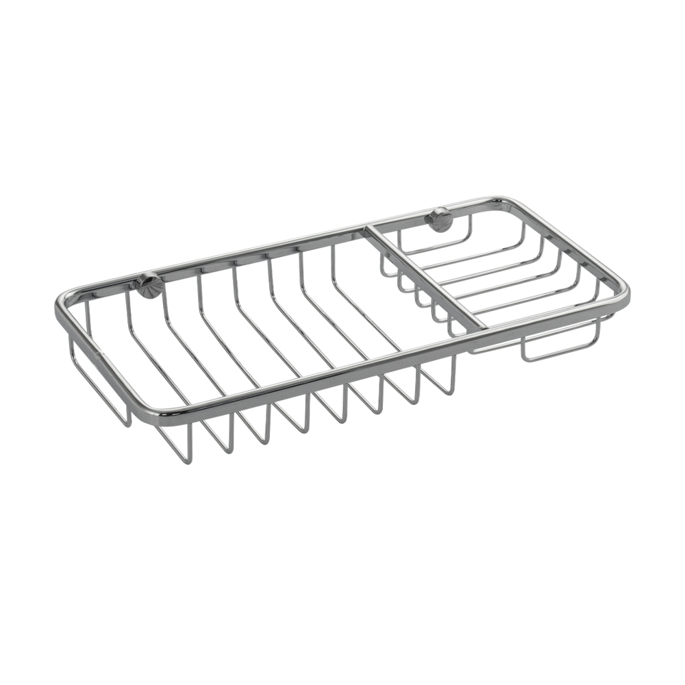 Мыльница подвесная, настенная, большая, двухсекционная, прямоугольной формы, решетка, хромированная. Материал изготовления — ЦАМ. Хромированное покрытие очень стойко переносит истирания и обеспечивает зеркальный блеск изделия. Сетчатый каркас не позволяет влаге скапливаться, поэтому мыло долгое время сохраняет свою форму. Идеально подойдет не только для ванной, но и для кухни. Изделие крепится к стене с помощью дюбелей и саморезов (входят в комплект). Габаритные размеры: ширина 240 мм, глубина 120 мм, высота 30 мм. Вес - 0,400 кг, объём - 0,00150 м3.