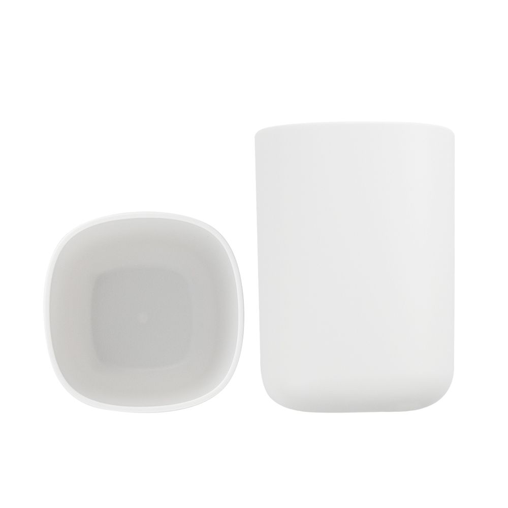 Стакан для зубных щёток и паст настольный — необходимый аксессуар любой ванной комнаты и кухни. Приспособление обеспечит порядок и правильное хранение гигиенических принадлежностей. Изделие выполнено из пластика АБС с белым матовым покрытием. Такое сочетание материалов делает конструкцию прочной и долговечной. Гармоничный дизайн и белая расцветка отлично впишется в любой интерьер. Изделие имеет специальное покрытие, которое защищает его от влаги и придает ему дизайнерский внешний вид. В коллекции представлены: дозатор для мыла, мыльница, напольный ершик для унитаза, стакан для зубных щеток. Габаритные размеры: высота стакана 100 мм, ширина 75 мм, глубина 75 мм. Вес - 0,100 кг, объём - 0,00095 м3