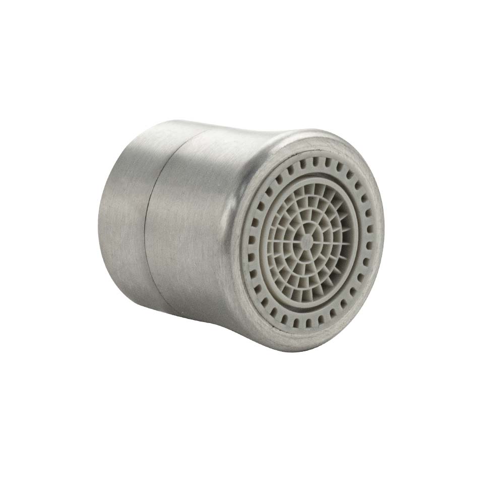 Аэратор наружный, пластик АБС, матовый хром, внутр. резьба, двухрежимный, предназначен для ограничения расхода воды. Переключение режимов подачи воды осуществляется путём поворота наконечника аэратора. Инновационная технология позволяет экономить до 50% воды при пользовании сантехническими приборами, не ухудшая их пользовательских качеств. Производительность: 5,7 л/мин при 3 бар. Габаритные размеры: длина 25 мм, диаметр 25 мм. Вес - 0,027 кг, объём - 0,00005 м3. Комплект: аэратор, уплотнения.