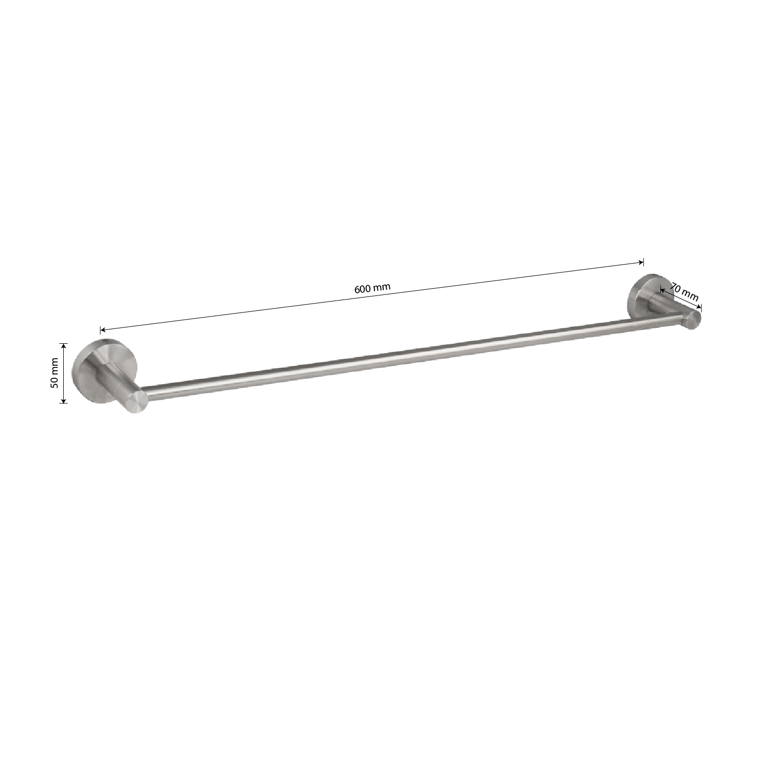 Держатель для полотенец металлический, прямой. Изготовлен из прочной нержавеющей стали марки SUS 304 с матовым покрытием, которое придает безупречный стильный вид и долговечность. На держателе с легкостью можно размещать любые полотенца для сушки. Идеально подойдет не только для ванной, но и для кухни, а также для дачи или гаража - при необходимости на держатель можно вешать любые предметы. Изделие крепится к стене с помощью дюбелей и саморезов (входят в комплект). Габаритные размеры: длина 600 мм, диаметр посадочного седла 50 мм, глубина 70 мм. Вес - 0,500 кг, объём - 0,00463 м3.