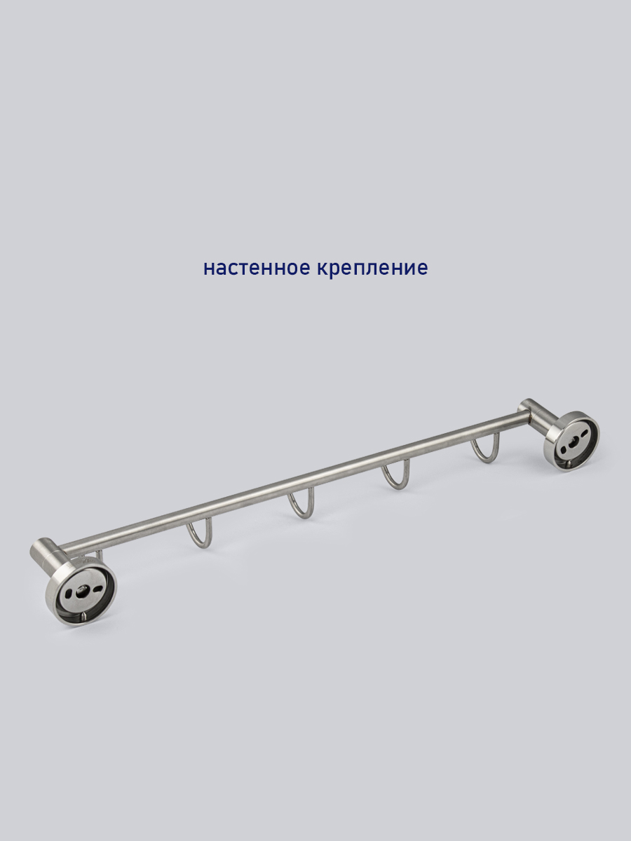 Держатель для полотенец металлический с пятью крючками. Изготовлен из прочной нержавеющей стали марки SUS 304 с матовым покрытием, которое придает безупречный стильный вид и долговечность. На держателе с легкостью можно размещать вещи для сушки или вешать, как полотенца, так и одежду перед походом в душ. Идеально подойдет не только для ванной, но и для кухни, а также для дачи или гаража - при необходимости на держатель можно вешать любые предметы. Изделие крепится к стене с помощью дюбелей и саморезов (входят в комплект). Размеры: длина 490 мм, высота 55 мм, глубина 85 мм. Вес - 0,500 кг, объём - 0,00336 м3.