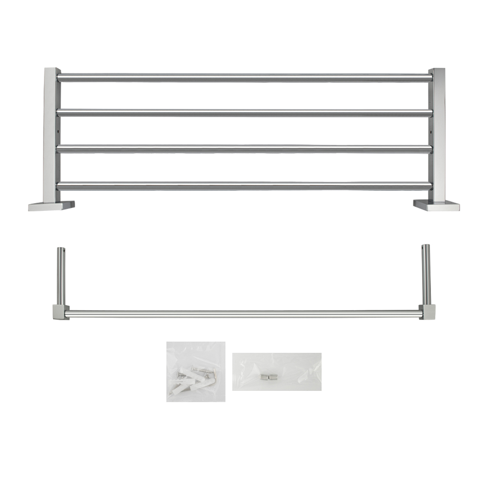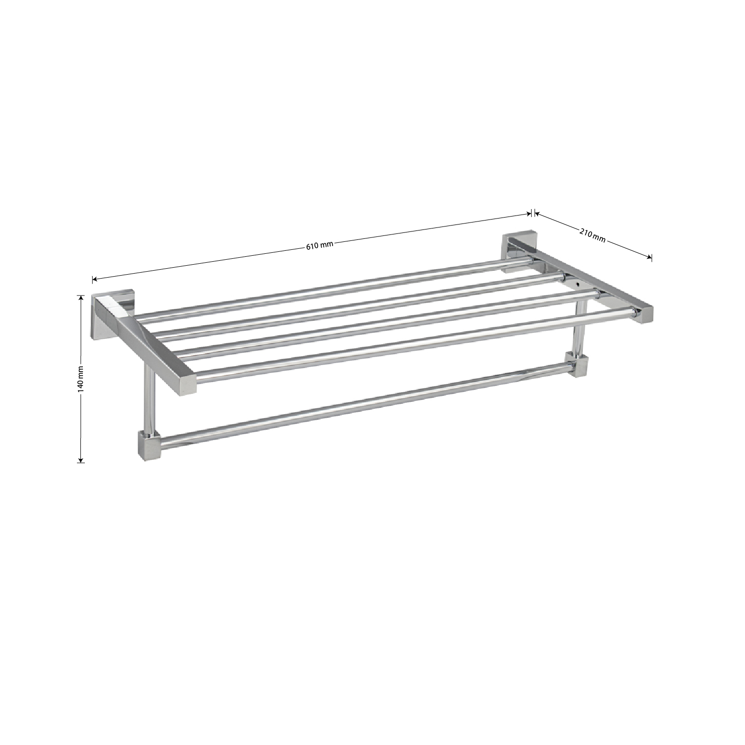 Полка для полотенца с опорой, большая, для ванной, привлекает своим современным дизайном, многофункциональностью и надежностью конструкции. Кухня, ванная, прихожая, кладовая или гардеробная - эта полка идеально подойдет везде. Металлическая полка оснащена дополнительной перекладиной. Хромированная нержавеющая сталь делает её устойчивой к влаге и исключает появление ржавчины. Полка для ванной функциональное и практичное решение для любого интерьера. Материал изготовления - ЦАМ. Хромированное покрытие очень стойко переносит истирания и обеспечивает безупречный вид изделия. Идеально подойдет не только для ванной, но и для кухни. Изделие крепится к стене с помощью дюбелей и саморезов (входят в комплект). Габаритные размеры: длина 610 мм, высота 140 мм, глубина 210 мм. основание мм. Вес - 1.12 кг, объём - 0.0091 м3.