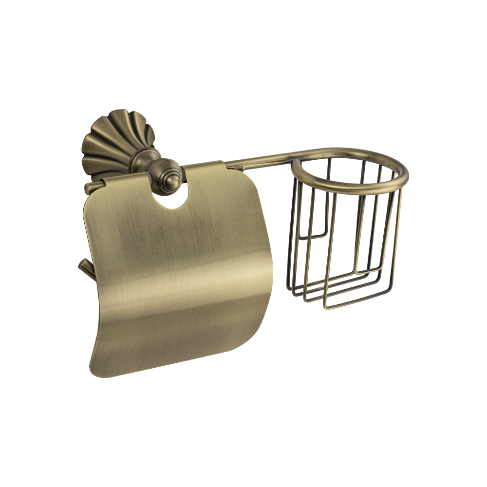 Держатель освежителя воздуха и туалетной бумаги с крышкой, металлический, стильный и функциональный элемент санузла. Благодаря наличию крышки рулон будет защищен от попадания воды. Держатель легко и удобно крепится к стене при помощи фурнитуры входящей в комплект поставки. Материал изготовления — латунь. Имеет специальное бронзовое, матовое покрытие, которое защищает изделие от влаги и придает ему безупречный стильный вид и долговечность. Удобно чистить и легко менять рулоны и аэрозоли. Габаритные размеры: ширина 235 мм, высота 150 мм, основание 60 мм. Вес - 0,800 кг, объём - 0,00487 м3