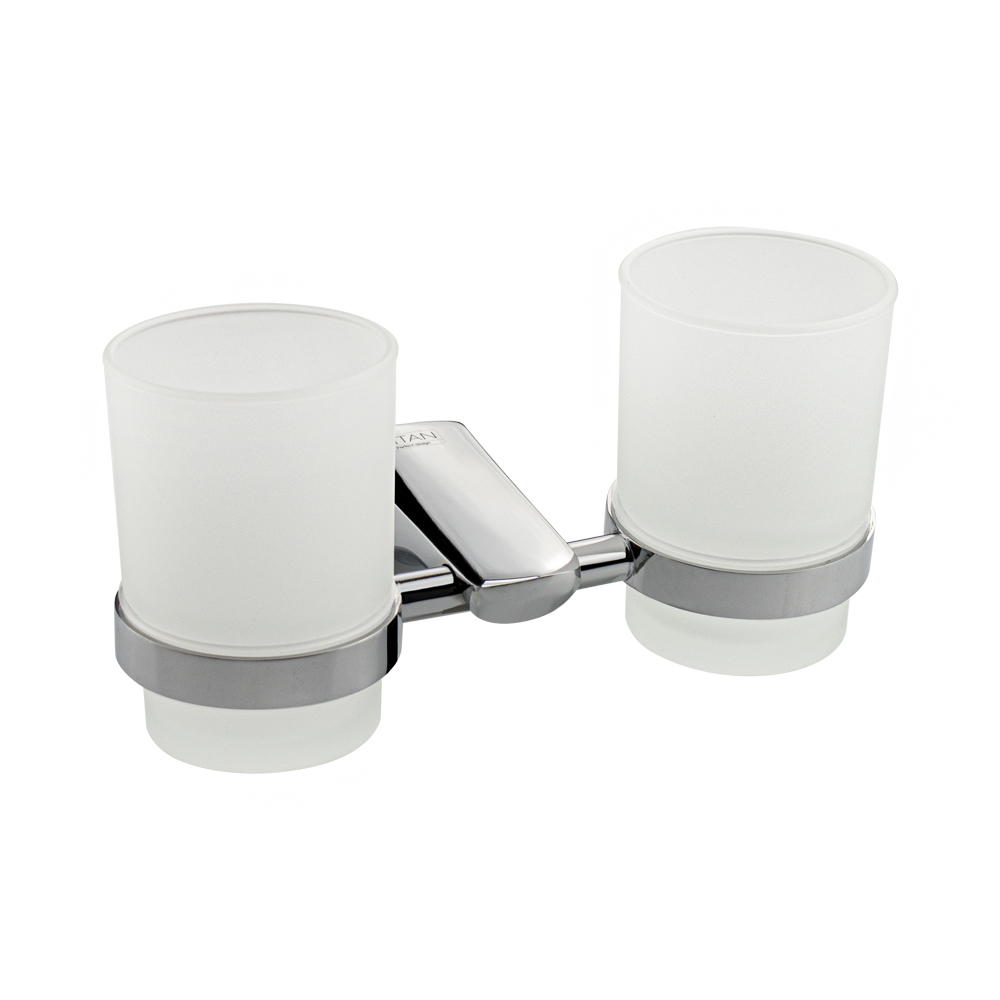 Стаканы стеклянные с креплением к стене, правильной формы на основании, хромированный. Изделие выполнено из матового стекла и металла с хромированным покрытием. Материал изготовления — ЦАМ (цинк-алюминий-медь) + нержавеющая сталь. Хромированное покрытие очень стойко переносит истирания и обеспечивает зеркальный блеск изделия. Идеально подойдет не только для ванной, но и для кухни. Изделие крепится к стене с помощью дюбелей и саморезов (входят в комплект). Габаритные размеры: высота стакана 95 мм, диаметр 65 мм, ширина 195 мм, глубина 100 мм. Вес - 0,700 кг, объём - 0,00320 м3.