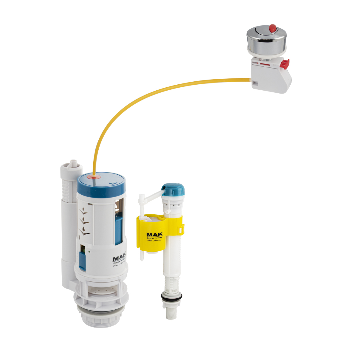 Комплект для бачка унитаза, ко всем моделям, универсальный, состоящий из впускного нижнего и выпускного клапана. Сливной механизм бачка имеет высокую хромированную кнопку, универсальный, подходит для бачков различной высоты, регулировка выпускного клапана производится ползунком на корпусе. Тросик на выпуском клапане позволяет устанавливать клапан в бачки любой высоты и конфигурации. Изделие выполнено из высококачественного пластика АБС, который обеспечивает длительное использование без поломок, отличается пониженным уровнем шума. Может устанавливаться в любом типе бачка с боковой подводкой для подачи воды. Габаритные размеры: высота 240 мм, ширина 105 мм, подключение 1/2, наружняя резьба. Вес - 0,66 кг, объём - 0,00556 м3.
