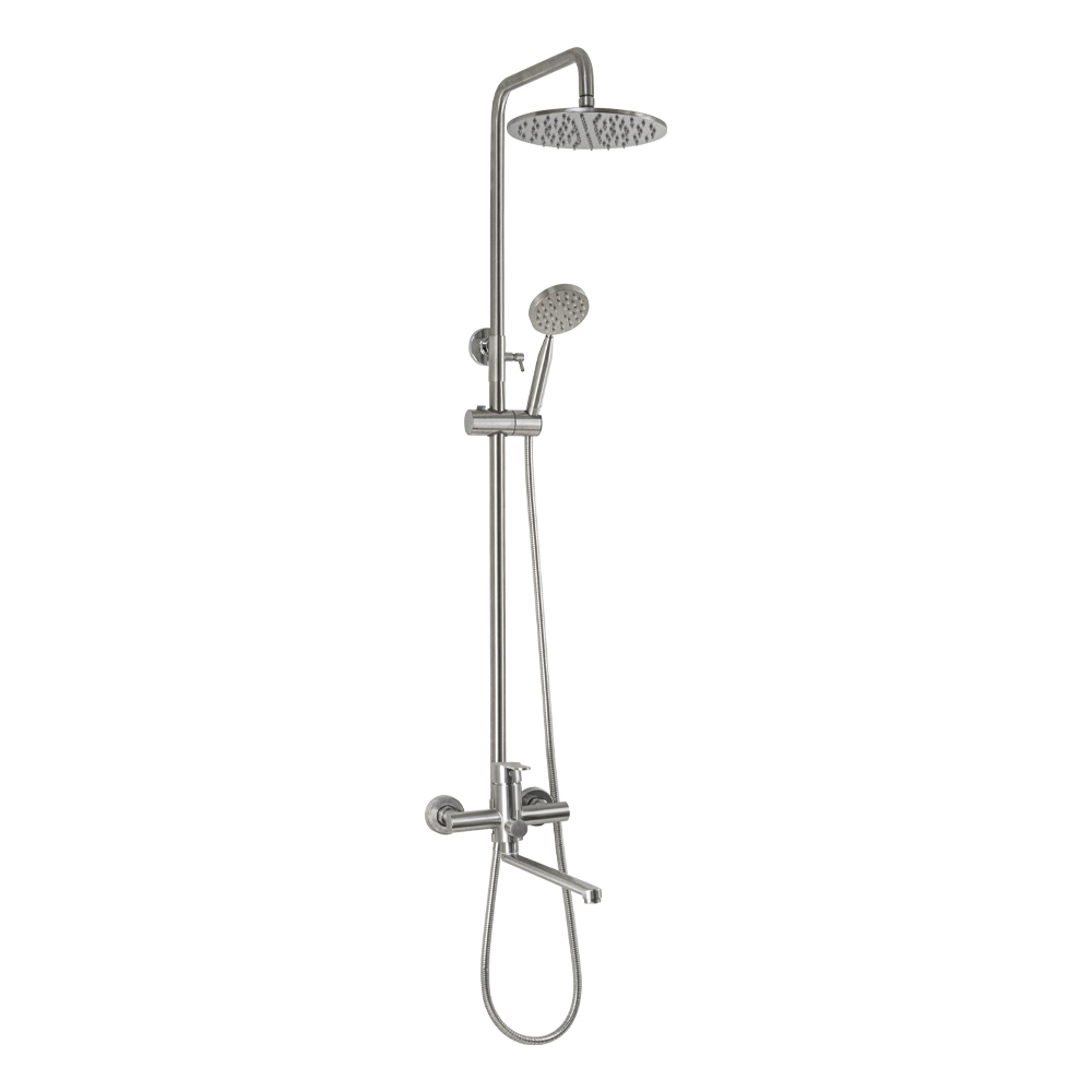 Смеситель с длинным изливом + стойка душевая "тропический душ", ПРЯМОЙ, с двумя лейками из нержавеющей стали марки 304