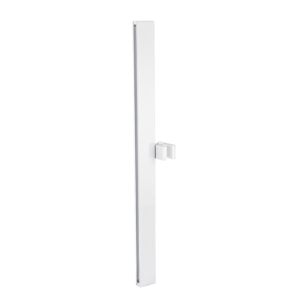 Душевая стойка, глянцевая, квадратный профиль, цвет белый, произведена из высокопрочного АБС пластика, устойчивой к агрессивному воздействию внешней среды и механическим деформациям, держатель для душа с механической фиксацией и регулировкой по высоте. Размеры: высота штанги 655 мм, глубина 20 мм, ширина трубы 47 мм, расстояние между креплением 605 мм. Вес - 0.49 кг, объём - 0.00495 м3. В комплекте душевая штанга, крепления, держатель душевой лейки.