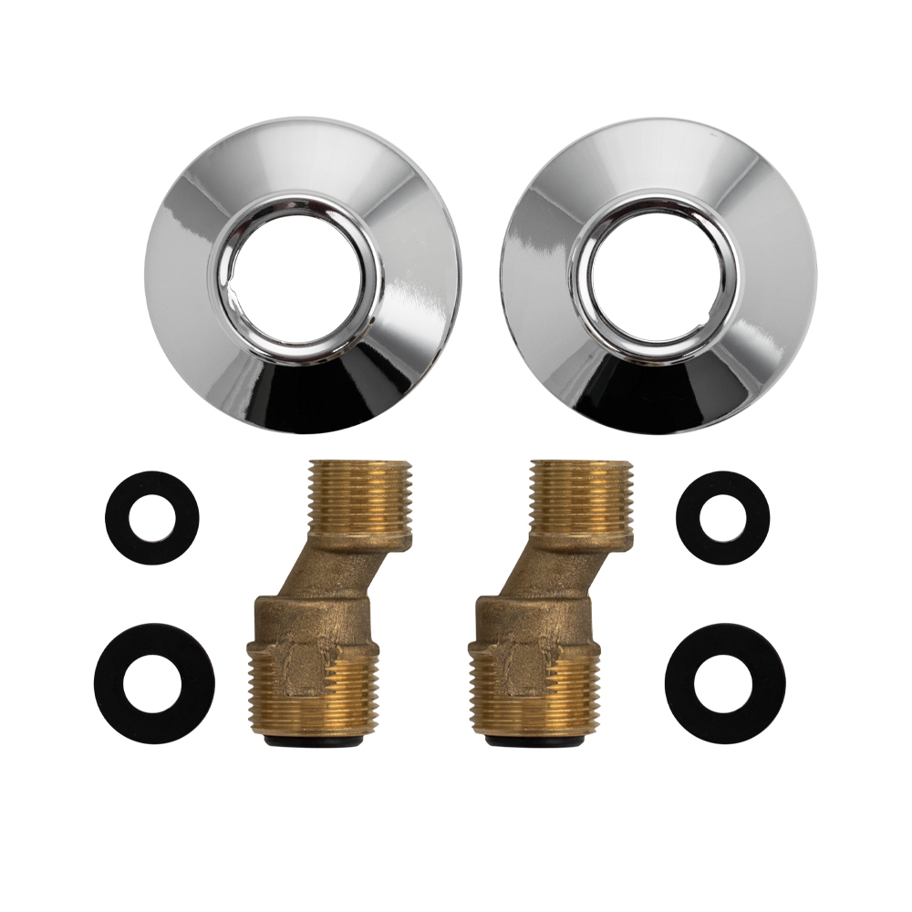 Комплект латунный: 2 эксцентрика + 2 чашки. Укомплектованные декоративными хромированными чашками резьбовые эксцентрики со встроенным резиновым кольцом, обеспечивают беспроблемное подключение к водопроводу сантехнических смесителей. Применение изделий дает возможность компенсировать неточности при размещении водорозеток либо резьбовых патрубков стального водопровода, скорректировать положение смесителя в пространстве. Материалом фитинга, изготовленного методом горячего объемного штампования, служит высококачественная латунь. Гальванопокрытие соединителей – никелевое, чашек – хромовое. Высота эксцентрика – 55 мм, чашка 65 мм. Вес - 0,200 кг, объем - 0,00024. Комплект: чашки, эксцентрики. уплотнения
