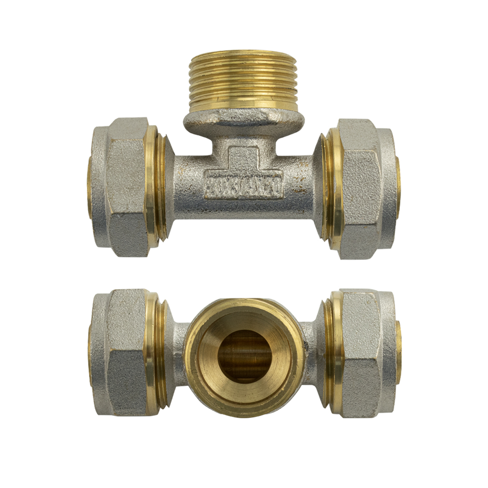 Тройник для соединения м/п трубы 16х1/2х16, ц/ш/ц, латунный. Габаритные размеры: высота 50 мм, ширина 73 мм. Вес - 0,200 кг, объем - 0,00006 м3.
