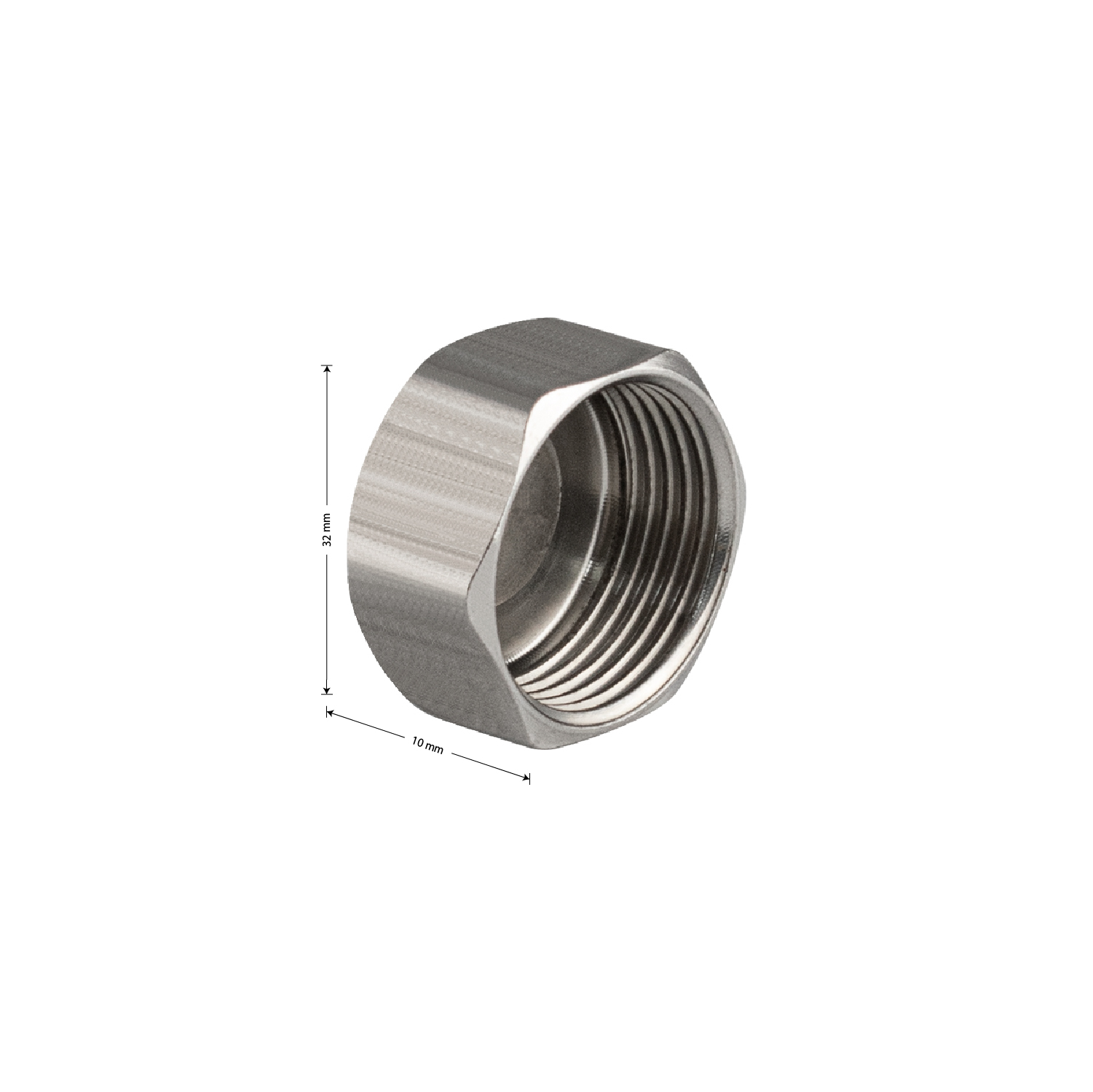 Заглушка на трубу 3/4, внутренняя резьба, из нержавеющей стали марки 304. Габаритные размеры: высота 10 мм, ширина 32 мм. Вес - 0,020 кг, объем - 0,00003 м3.