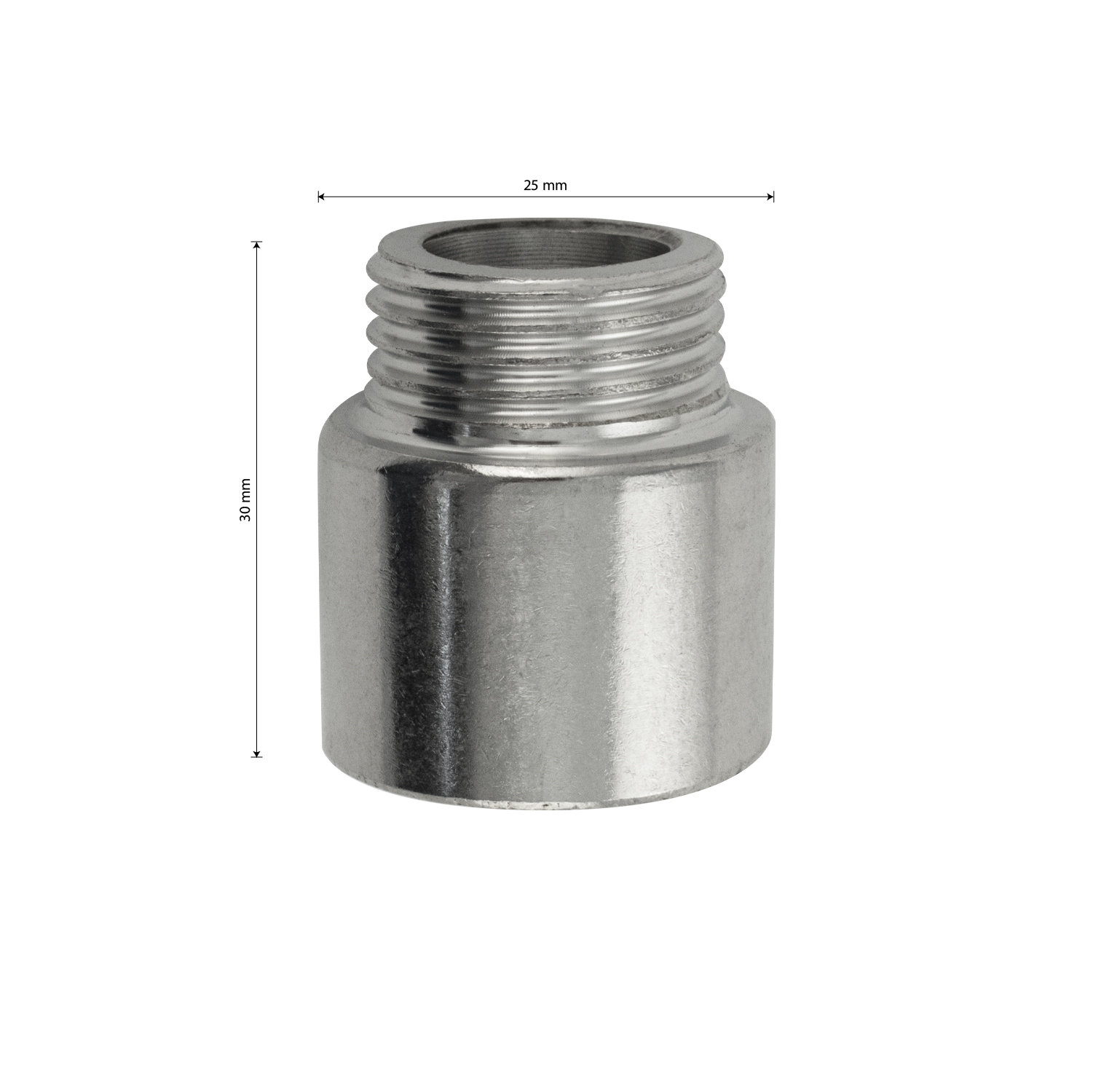Удлинитель 20 мм, 1/2м х 1/2п, из нержавеющей стали марки 304. Габаритные размеры: высота 30 мм, ширина 25 мм. Вес - 0,020 кг, объем - 0,00003 м3.