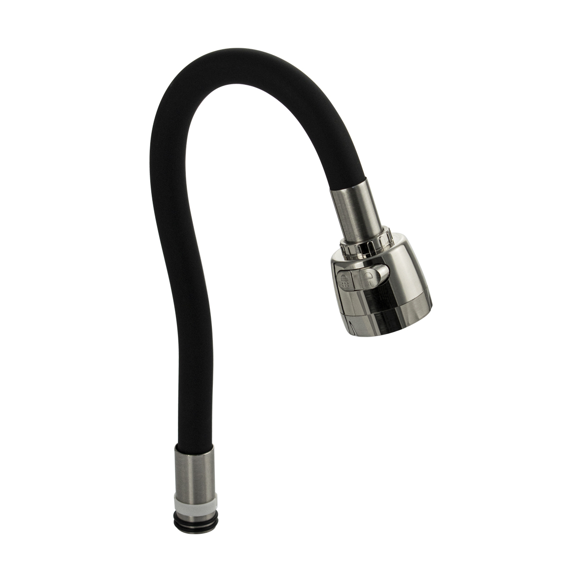 Излив к смесителю на кухню, гибкий с большим двухрежимным аэратором. Основным предназначением излива является подача воды, поступающей из смесителя. С-образная деталь имеет удобную конфигурацию и отлично подходит к смесителям на раковину и мойкам. Длинный излив обеспечит мощный поток воды. Универсальный излив для смесителя изготовлен из нержавеющей стали с силиконовой оболочкой черного цвета. За счет гибкости излива, Вы без труда сможете вымыть объемную посуду, фрукты, дотянуться до труднодоступных мест и любого содержимого мойки Идеально впишется в любой дизайн и может использоваться повсеместно. Устройство оснащено аэратором, проходя через него, вода насыщается множеством пузырьков воздуха, позволяя формировать струю в мягкий и ровный поток, а также экономить расход воды. Габаритные размеры: глубина 170 мм, высота 300 мм. Вес - 0,53 кг, объём - 0,00341 м3.