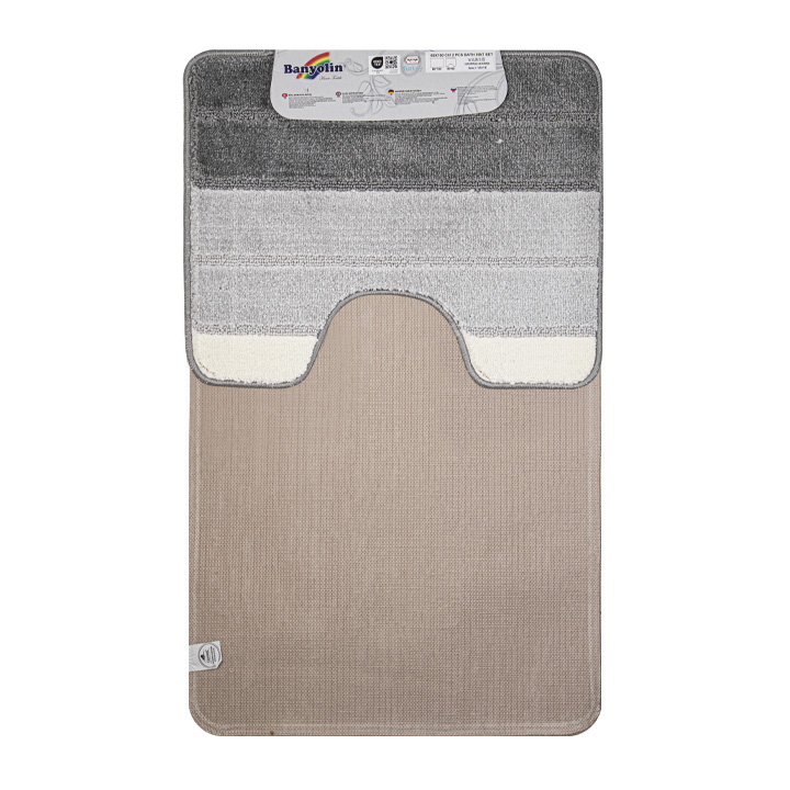 Коврик в ванную SILVER двойной, КОРИЧНЕВЫЙ, полосы, 60х100 + 50х60 см, 100% полиэстер.