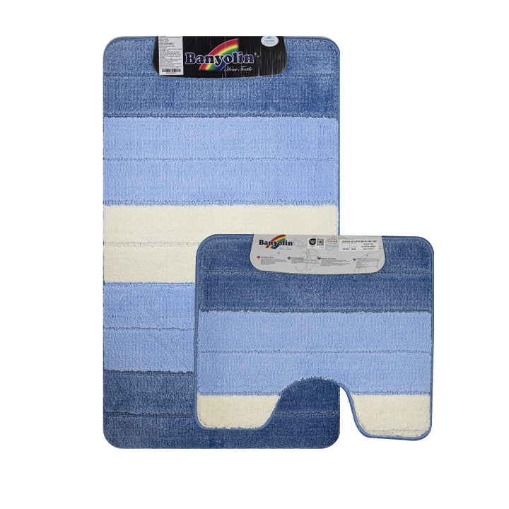 Коврик в ванную SILVER двойной, СИНИЙ, полосы, 60х100 + 50х60 см, 100% полиэстер.