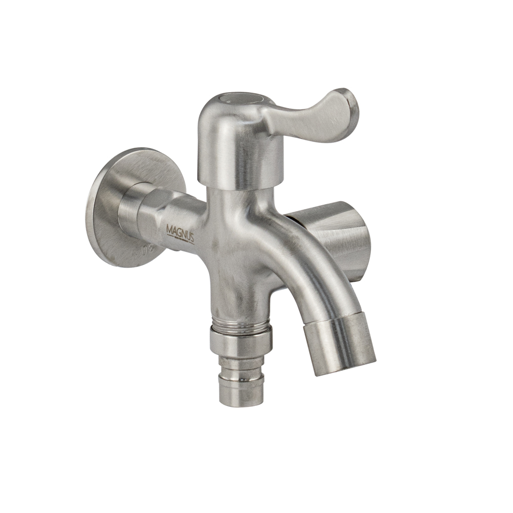 Кран водоразборный на 1/2", наружняя резьба, из нержавеющей стали марки SUS 304, с двойным выходом, металлокерамика, ручка флажок поворот на 90˚. Такая модель может использоваться на домашней кухне, на даче, в медицинских учреждениях и общественных местах. Габаритные размеры: высота 115 мм, длина 120 мм, диаметр посадочного седла 45 мм. Вес - 0,45 кг, объём - 0,00128 м3.