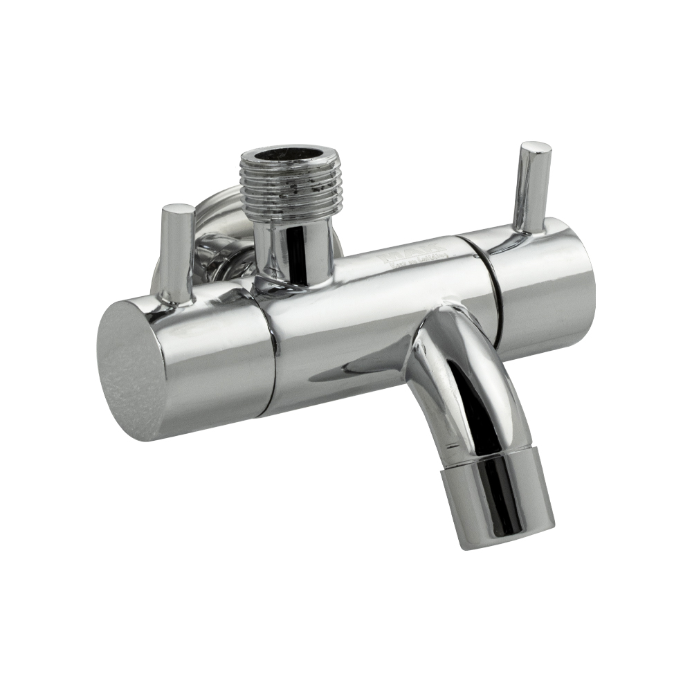 Кран водоразборный, универсальный с гусаком и с выходом под биде или душевую лейку, металлокерамика 1/2, хромированный. Габаритные размеры: высота 85 мм, ширина 105 мм, длина излива 50 мм. Вес - 0,400 кг, объём - 0,00110 м3. Габаритные размеры коробки: ширина 120 мм, высота 77 мм, глубина 90 мм.