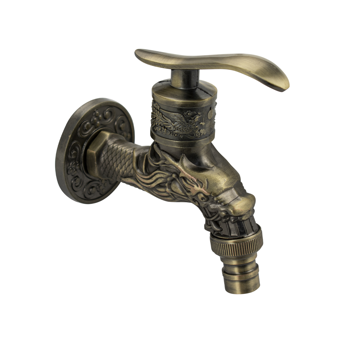 Кран водоразборный на 1/2", от стены 10 см, наружняя резьба, латунный корпус под бронзу, со штуцером для подключения поливочного шланга, металлокерамика, ручка флажок поворот на 90˚. Такая модель может использоваться на домашней кухне, на даче, в медицинских учреждениях и общественных местах. Габаритные размеры: высота 150 мм, длина 95 мм, диаметр посадочного седла 50 мм. Вес - 0,300 кг, объём - 0,00062 м3.