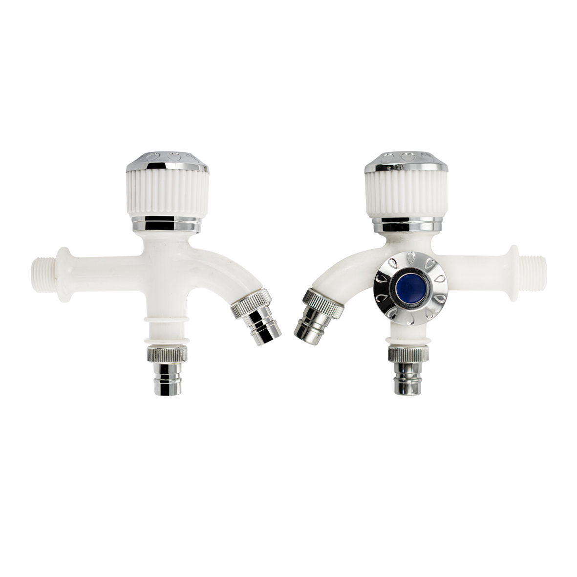 Кран водоразборный 1/2 из пластика АБС с двойным выходом, ручка вентиль.