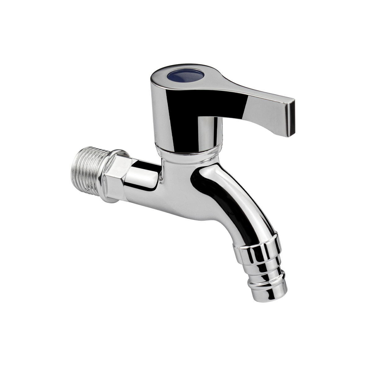 Кран водоразборный 1/2н, из высокопрочного пластика АБС хромированный со штуцером, с возможностью подсоединения поливочного шланга. Габаритные размеры: длина 95 мм от стены, высота 95 мм. Металлокерамика, ручка флажок. Вес - 0,08 кг, объём - 0,00026 м3