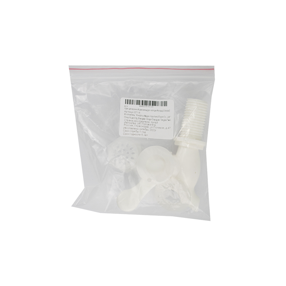Кран водоразборный 3/8, из высокопрочного пластика АБС, для бочки, цвет БЕЛЫЙ