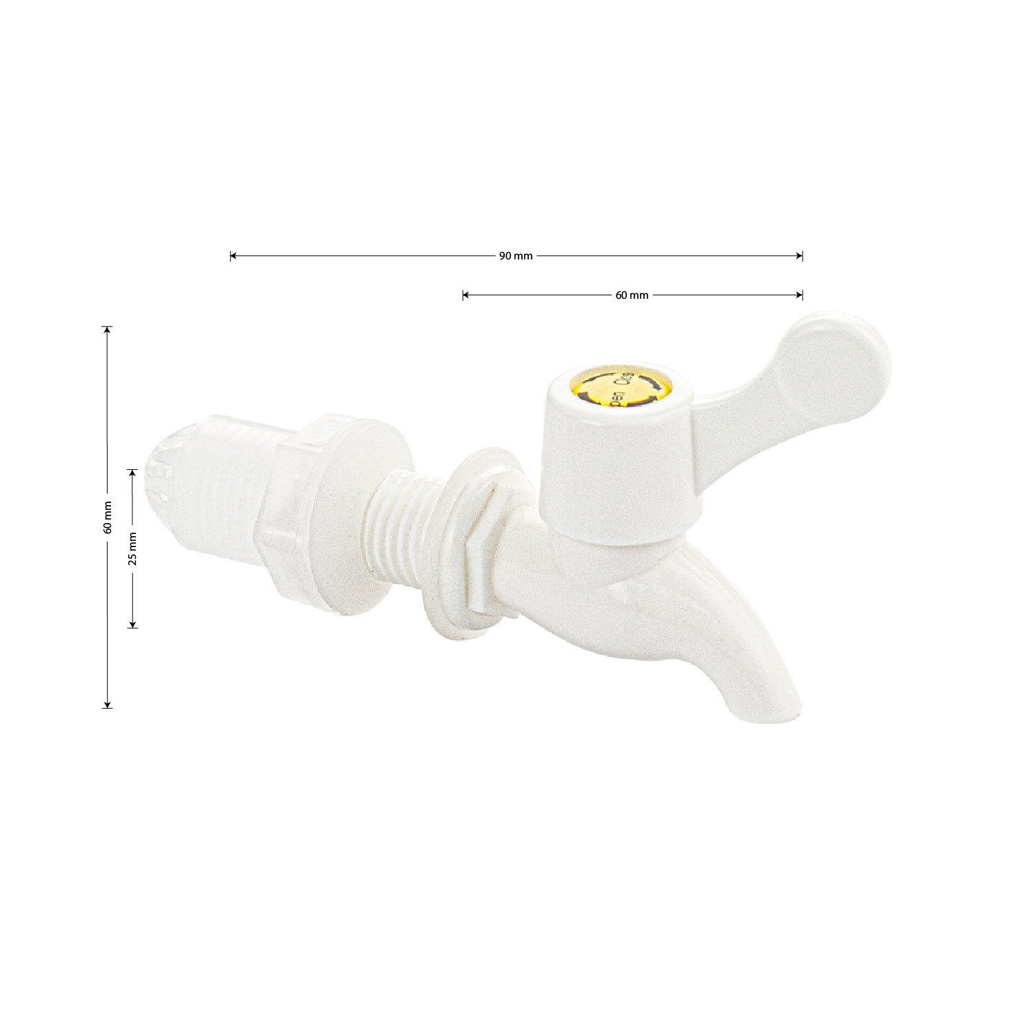 Кран из высокопрочного пластика АБС имеет широкий спектр применения во многих сферах, его можно использовать как кран в саду и как красивое украшение многих емкостей для различных жидкостей/напитков, таких как бочки, кувшины, цилиндры, подготовленные для монтажа крана. Габаритные размеры: высота 60 мм, длина 90 мм, длина от стены 60 мм, диаметр посадочного седла 25 мм. Вес 0,027 кг, объем 0,00013 м3.