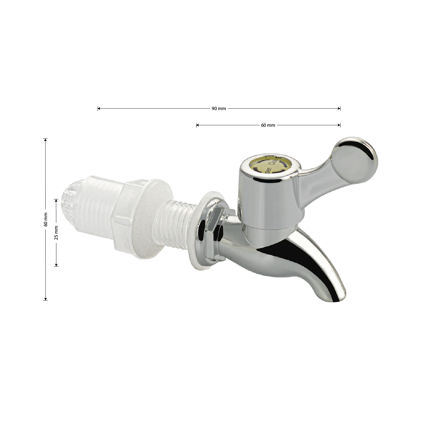 Кран из высокопрочного пластика АБС имеет широкий спектр применения во многих сферах, его можно использовать как кран в саду и как красивое украшение многих емкостей для различных жидкостей/напитков, таких как бочки, кувшины, цилиндры, подготовленные для монтажа крана. Габаритные размеры: высота 60 мм, длина 90 мм, длина от стены 60 мм, диаметр посадочного седла 25 мм. Вес 0,027 кг, объем 0,00013 м3