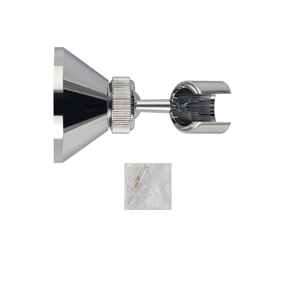 Кронштейн для душевой лейки пластиковый, хромированный, снабжен встроенным соединительным шарниром, выполняющим поворотную функцию. Крепление для душа позволяет фиксировать шланг в вертикальном положении возле стены или в другом удобном месте. Хромированное покрытие обеспечивает высокую устойчивость к коррозии и эстетичный внешний вид. С крепления легко удалить загрязнения, капли воды и известковый налет. Габаритные размеры: длина 90 мм, диаметр посадочного седла 62 мм. Вес - 0.22 кг, объём - 0.00036 м3.