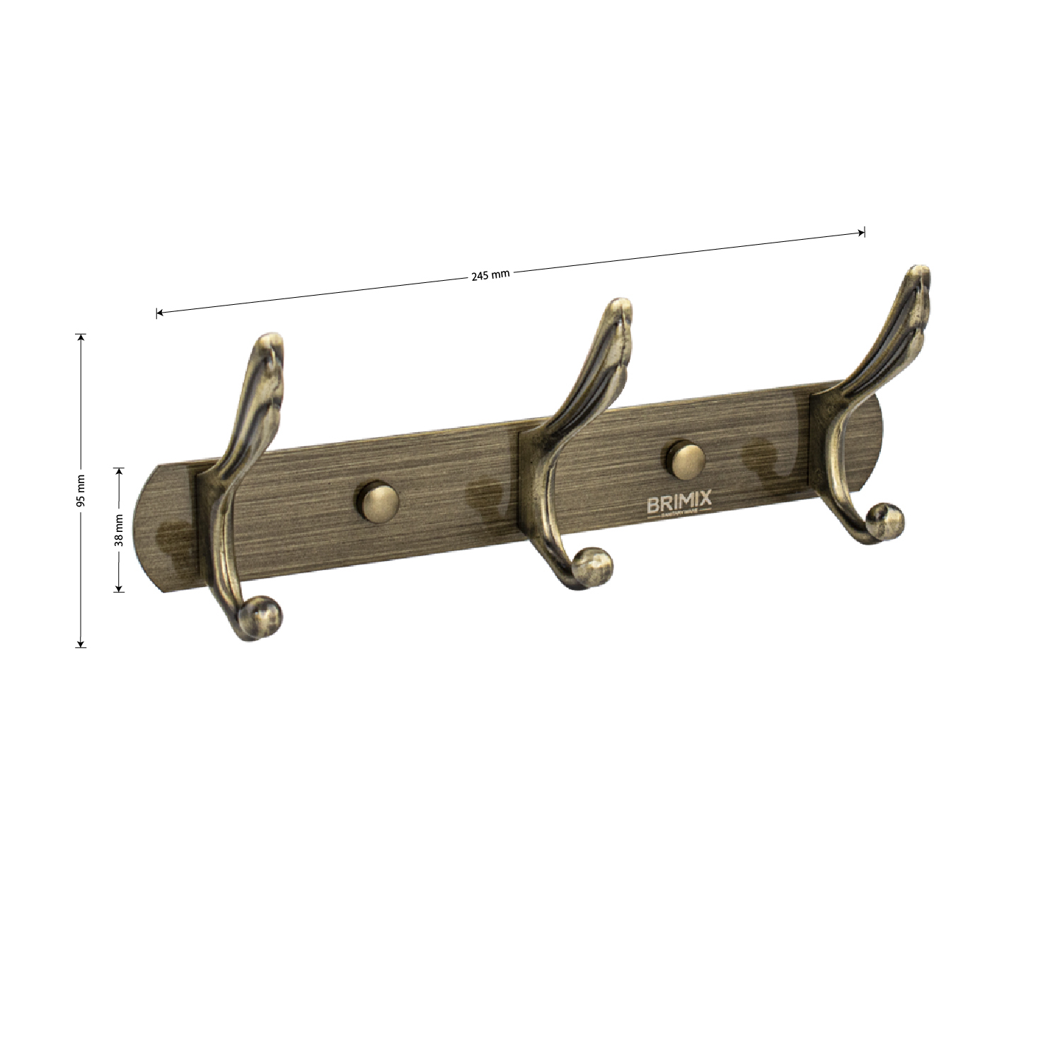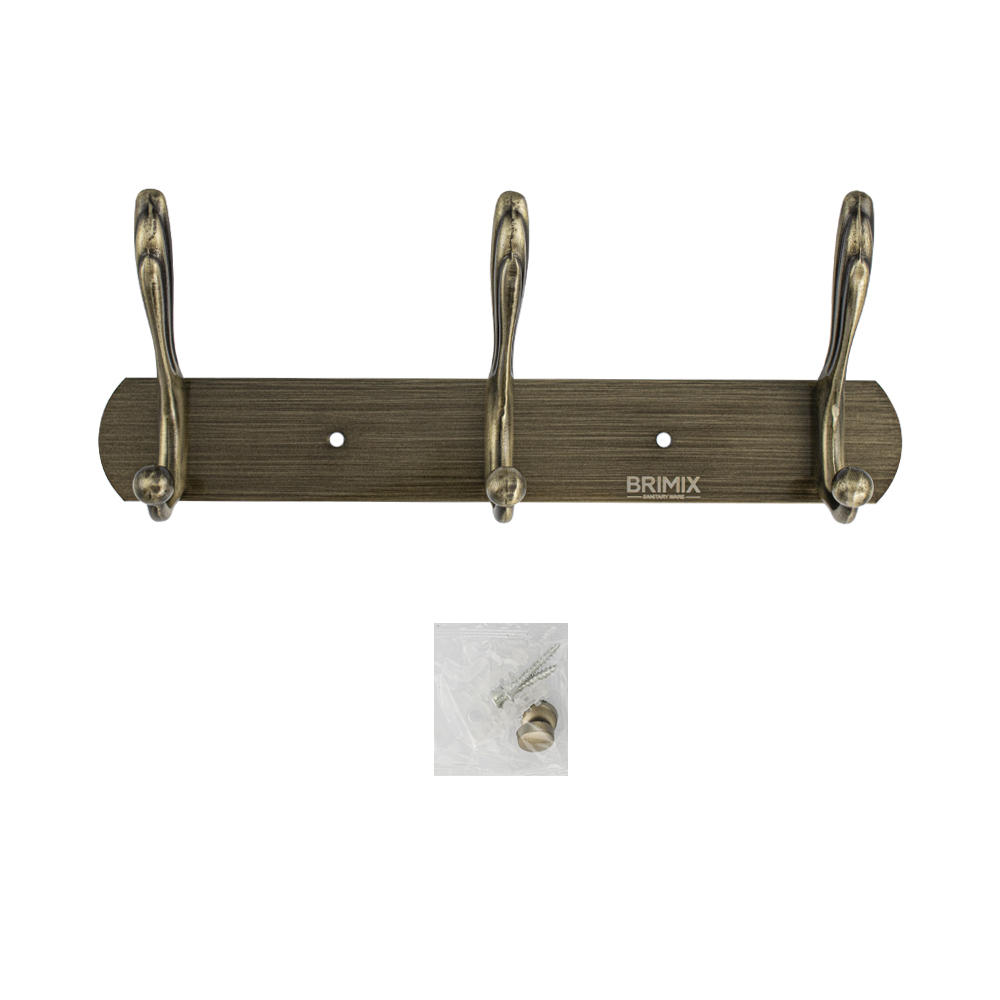 Вешалка - держатель для принадлежностей металлический, с тремя двойными крючками. Изготовлен из прочной нержавеющей стали марки SUS 304 с бронзовым покрытием, которое придает безупречный стильный вид и долговечность. Бронзовое покрытие очень стойко переносит истирания и обеспечивает долгий срок службы изделия. На держателе с легкостью можно размещать вещи для сушки или вешать, как полотенца, так и одежду перед походом в душ. Идеально подойдет не только для ванной, но и для кухни, а также для дачи или гаража - при необходимости на держатель можно вешать любые предметы. Изделие крепится к стене с помощью дюбелей и саморезов (входят в комплект). Габаритные размеры: длина 245 мм, высота 95 мм, глубина 55 мм. Вес - 0,200 кг, объём - 0,0015 м3.