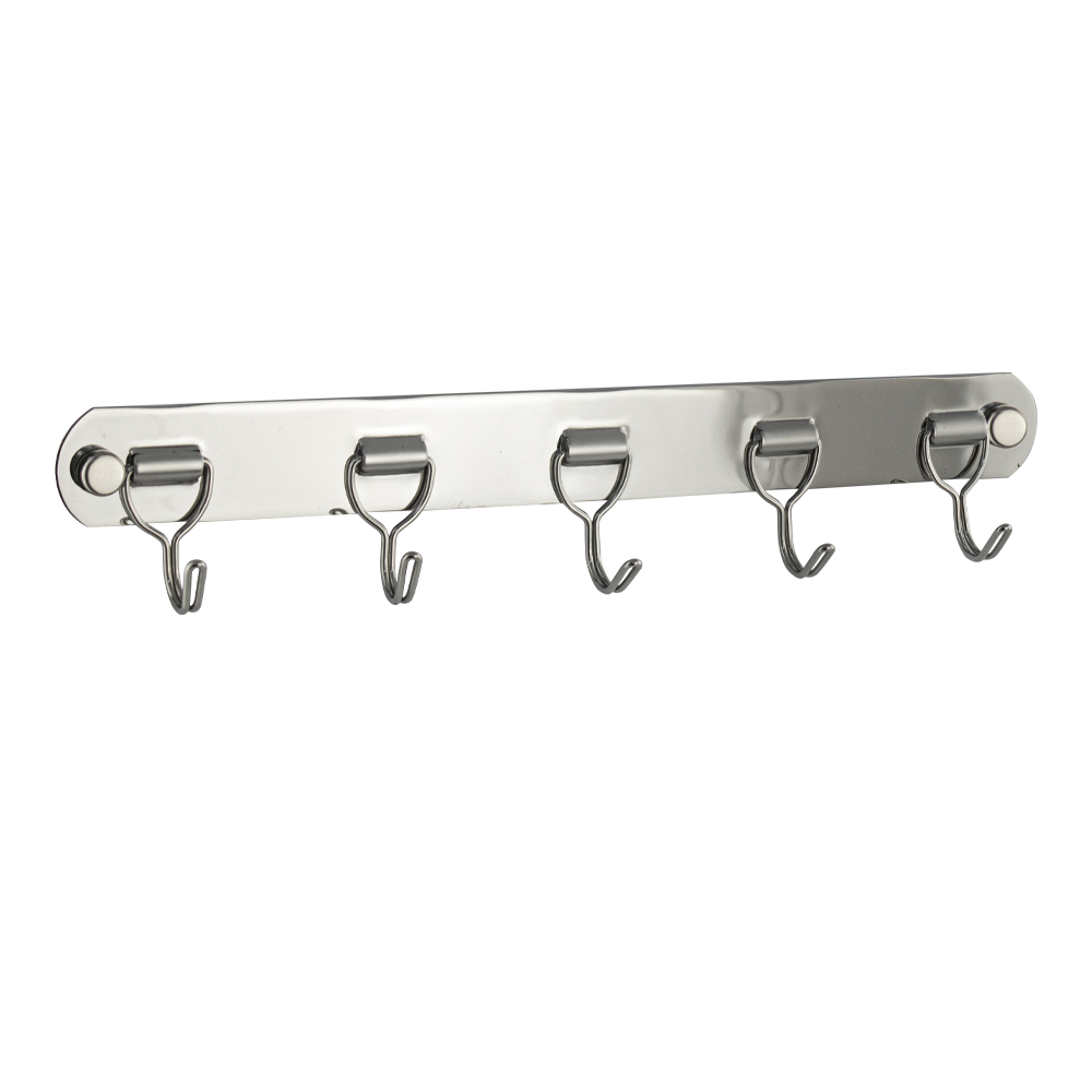 Вешалка - держатель для принадлежностей, металлический, хромированный, с пятью крючками. Изготовлен из прочной нержавеющей стали марки SUS 304 с хромированным покрытием, которое придает безупречный стильный вид и долговечность. Хромированное покрытие очень стойко переносит истирания и обеспечивает зеркальный блеск изделия. На держателе с легкостью можно размещать вещи для сушки или вешать, как полотенца, так и одежду перед походом в душ. Идеально подойдет не только для ванной, но и для кухни, а также для дачи или гаража - при необходимости на держатель можно вешать любые предметы. Изделие крепится к стене с помощью дюбелей и саморезов (входят в комплект). Габаритные размеры: длина 255 мм, высота 45 мм, глубина 25 мм, ширина планки 27 мм. Вес - 0,068 кг, объём - 0,0004 м3.