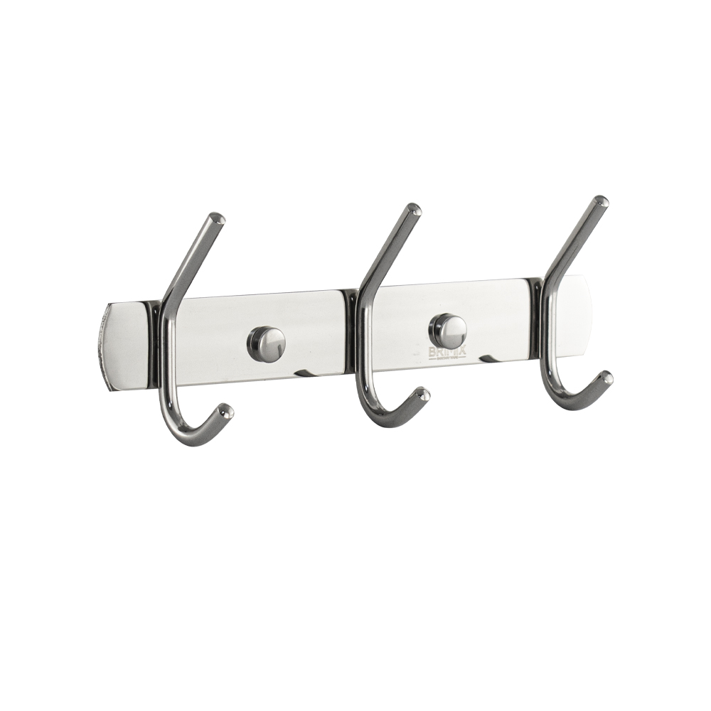 Вешалка - держатель для принадлежностей, металлический, хромированный, с тремя двойными крючками. Изготовлен из прочной нержавеющей стали марки SUS 304 с хромированным покрытием, которое придает безупречный стильный вид и долговечность. Хромированное покрытие очень стойко переносит истирания и обеспечивает зеркальный блеск изделия. На держателе с легкостью можно размещать вещи для сушки или вешать, как полотенца, так и одежду перед походом в душ. Идеально подойдет не только для ванной, но и для кухни, а также для дачи или гаража - при необходимости на держатель можно вешать любые предметы. Изделие крепится к стене с помощью дюбелей и саморезов (входят в комплект). Габаритные размеры: длина 205 мм, высота 75 мм, глубина 35 мм. Вес - 0,160 кг, объём - 0,00059 м3.