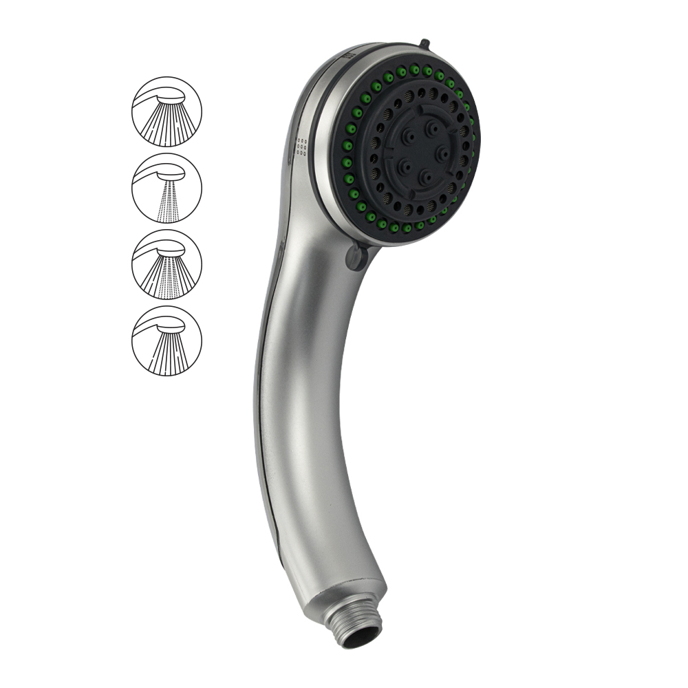 Душевая лейка отличается современным технологичным дизайном, высокой надежностью, долговечностью. Она изготовлена из влагостойкого пластика АБС и имеет декоративное покрытие цвета «хром», придающее устройству привлекательный вид и предохраняющее от агрессивного воздействия окружающей среды. Корпус отличается небольшим весом, что исключает повреждение напольной плитки или эмали ванны при случайном падении. Работает в четырех режимах с регулируемой интенсивностью: дождевая, обычная, струйный массаж. Ухаживать за душевой лейкой легко. Глянцевую поверхность достаточно протереть мягкой салфеткой, она в течение долгого времени не потеряет своего блеска. Система помогает мгновенно очистить силиконовые форсунки душевой лейки от известкового налета и загрязнения. Габаритные размеры: высота 210 мм, диаметр лейки 80 мм, диаметр корпуса 40 мм. Вес - 0,250 кг, объём - 0,00141 м3.