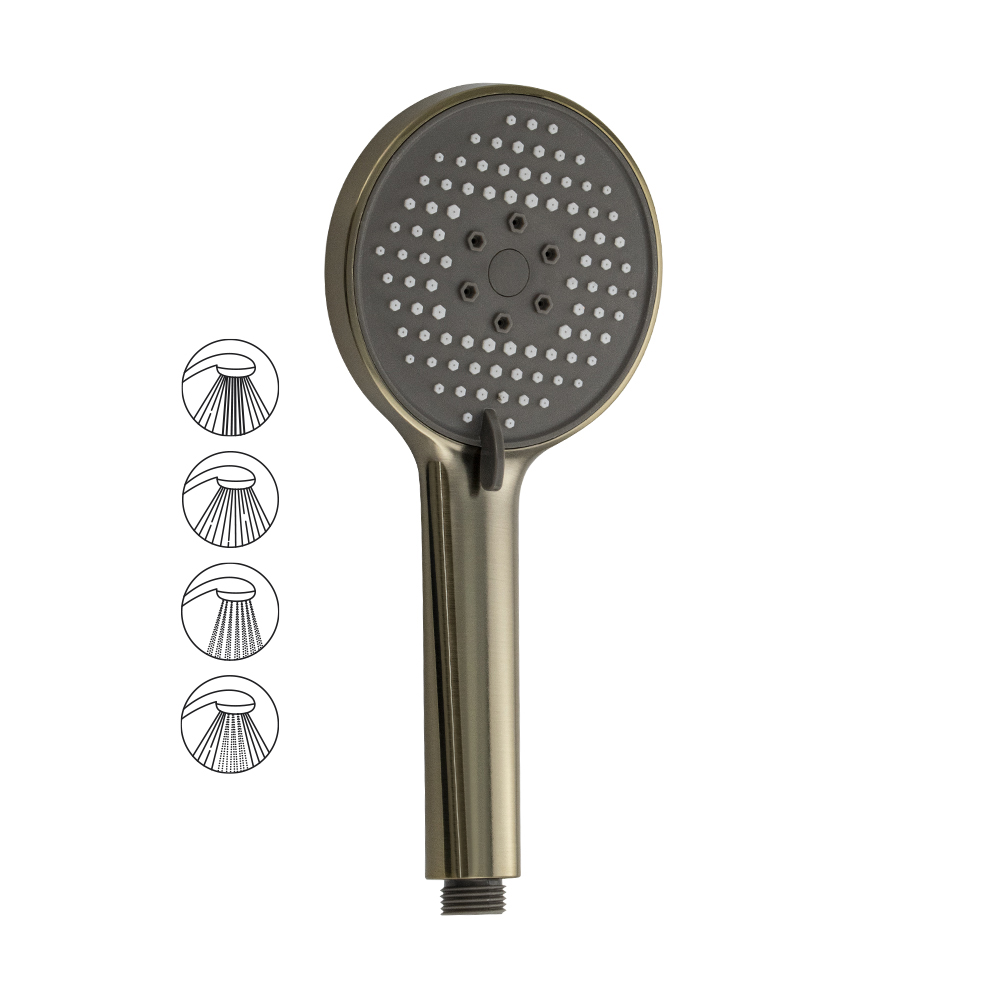 Душевая лейка массажная круглая, отличается современным технологичным дизайном, высокой надежностью, долговечностью. Она изготовлена из влагостойкого пластика АБС и имеет декоративное покрытие бронзового цвета, придающее устройству привлекательный вид и предохраняющее от агрессивного воздействия окружающей среды. Корпус отличается небольшим весом, что исключает повреждение напольной плитки или эмали ванны при случайном падении. Работает в двух режимах с регулируемой интенсивностью: обычная, струйный массаж. Ухаживать за душевой лейкой легко. Матовую поверхность достаточно протереть мягкой салфеткой, она в течение долгого времени не потеряет своего вида. Система помогает мгновенно очистить силиконовые форсунки душевой лейки от известкового налета и загрязнения. Габаритные размеры: высота 240 мм, диаметр лейки 115 мм. Вес - 0,250 кг, объём - 0,00160 м3.