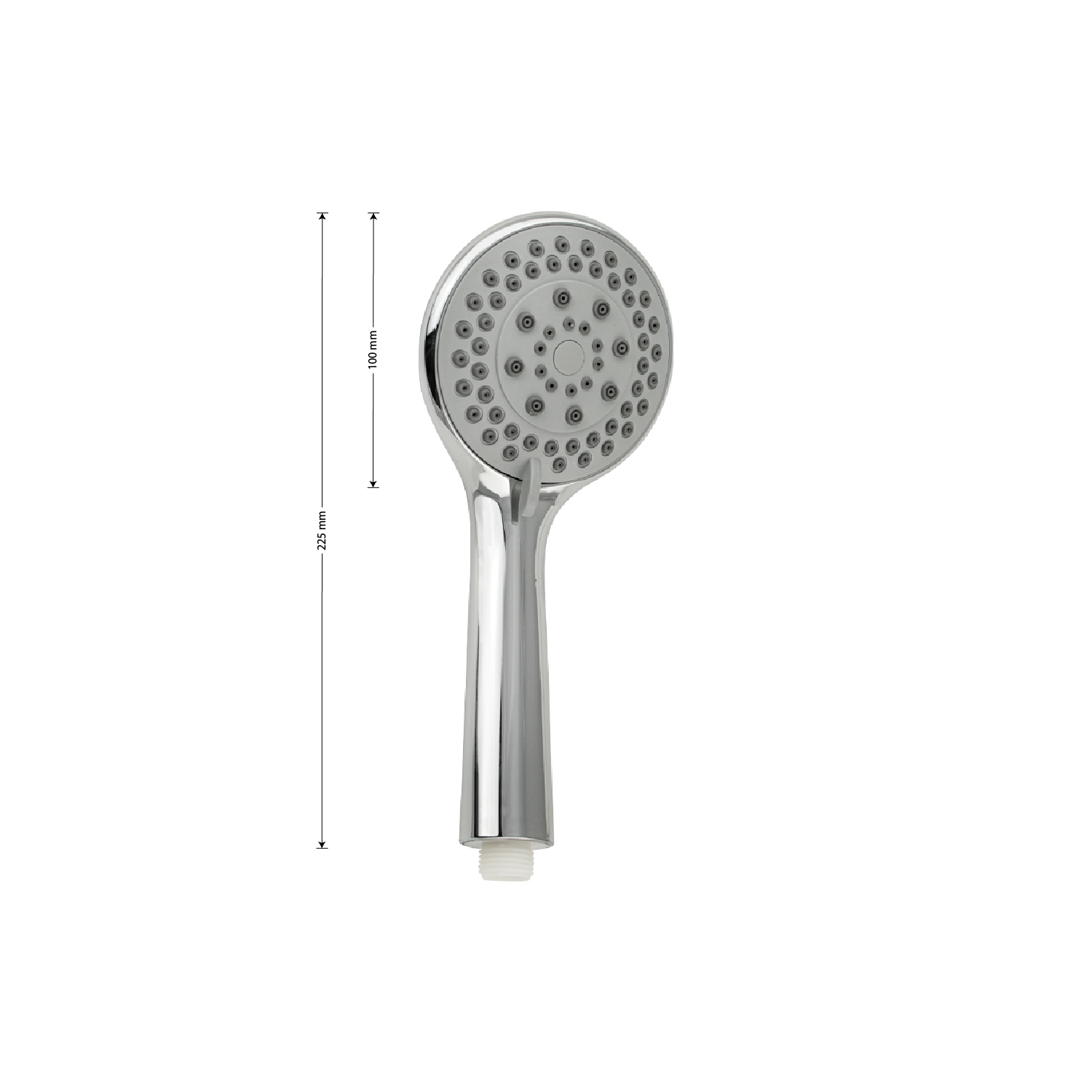 Душевая лейка отличается современным технологичным дизайном, высокой надежностью, долговечностью. Она изготовлена из влагостойкого пластика АБС и имеет декоративное покрытие цвета «хром», придающее устройству привлекательный вид и предохраняющее от агрессивного воздействия окружающей среды. Корпус отличается небольшим весом, что исключает повреждение напольной плитки или эмали ванны при случайном падении. Работает в пяти режимах с регулируемой интенсивностью. Ухаживать за душевой лейкой легко. Глянцевую поверхность достаточно протереть мягкой салфеткой, она в течение долгого времени не потеряет своего блеска. Система помогает мгновенно очистить силиконовые форсунки душевой лейки от известкового налета и загрязнения. Габаритные размеры: высота 225 мм, диаметр лейки 100 мм. Вес - 0,18 кг, объём - 0,00278 м3.