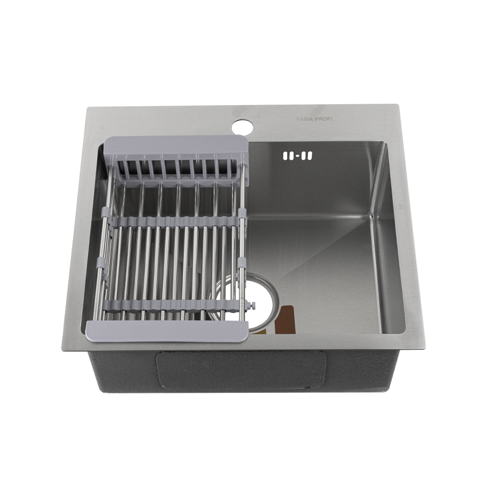 Мойка врезная, матовая, большой сифон с переливом. Сифон с углубленной горловиной, мусоросборником и крышкой. Врезная кухонная мойка произведена из премиальной нержавеющей стали AISI 304, обладает повышенной прочностью. Особенность мойки заключается в конструкции ее дна, имеющего небольшой уклон. Благодаря такой особенности, вода быстрее уходит в слив, не застаивается, что способствует поддержанию гигиеничности в чаше. Скругленные внутренние углы облегчают уход за мойкой, препятствуют скоплению частичек грязи.Тихой в использовании мойку делает шумоизолирующее покрытие и накладки с обратной стороны мойки. В комплект входит универсальная раздвижная корзина, коврик, сифон, мойка, крепёж. Габаритные размеры: ширина 500 мм, длина 450 мм, глубина 200 мм, толщина основания 3,0 мм, чаша 0,8 мм. Вес - 7,000 кг, объём - 0,06752 м3.