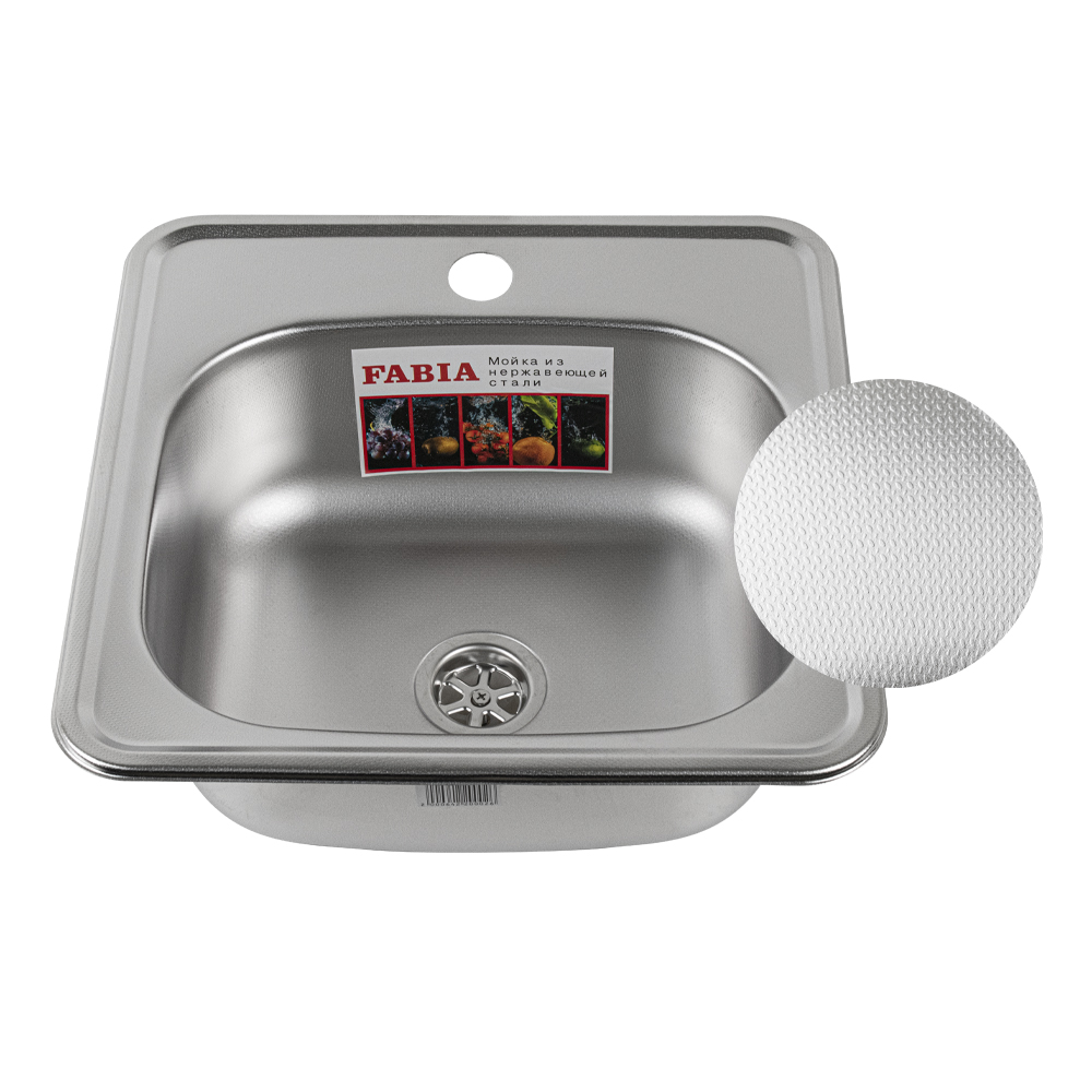Врезная мойка FABIA из нержавеющей стали, декорированная, отличный вариант для кухни, она прослужит многие годы. Классическая форма и матовый цвет гармонично впишутся в любой интерьер и никогда не выйдут из моды. Оптимальный размер позволяет свободно мыть посуду, без страха её разбить. Мойка врезается в столешницу. Специальное дополнительное антишумовое покрытие, нанесенное на обратную сторону чаш, разработано для снижения шума воды в мойке. Конструкция краев мойки, крепления и специальная уплотнительная прокладка обеспечивает максимально плотное прилегание к столешнице и защищает от протекания. Практичная площадка, расположенная по центру, даёт возможность вмонтировать любую понравившуюся модель смесителя. Габаритные размеры: ширина 380 мм, длина 380 мм, глубина 160 мм, толщина стали 0,6 мм. В комплекте гофросифон, крепёж. Вес - 1,400 кг, объём - 0,00565 м3.