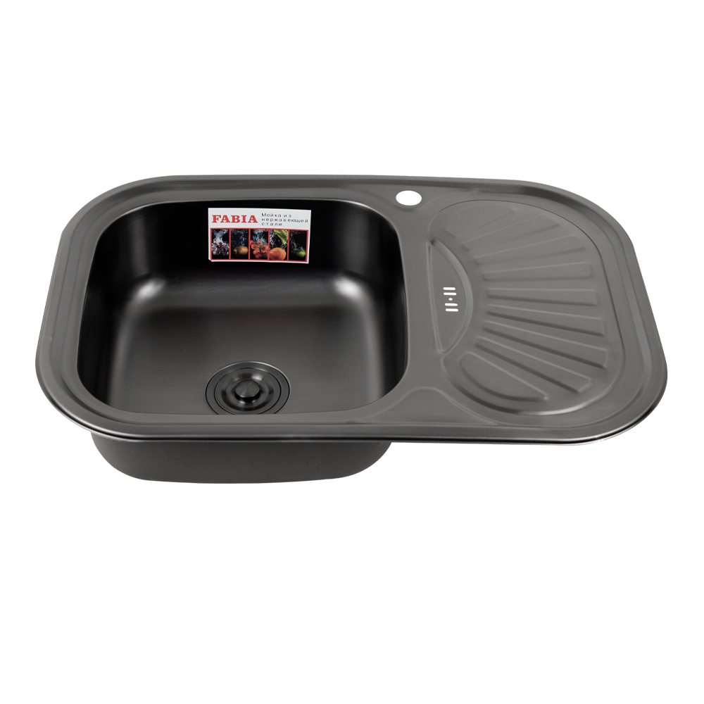 Мойка врезная 75х49 см, левая, ГРАФИТ, толщина 0,8 мм, глубина 180 мм + большой сифон с переливом