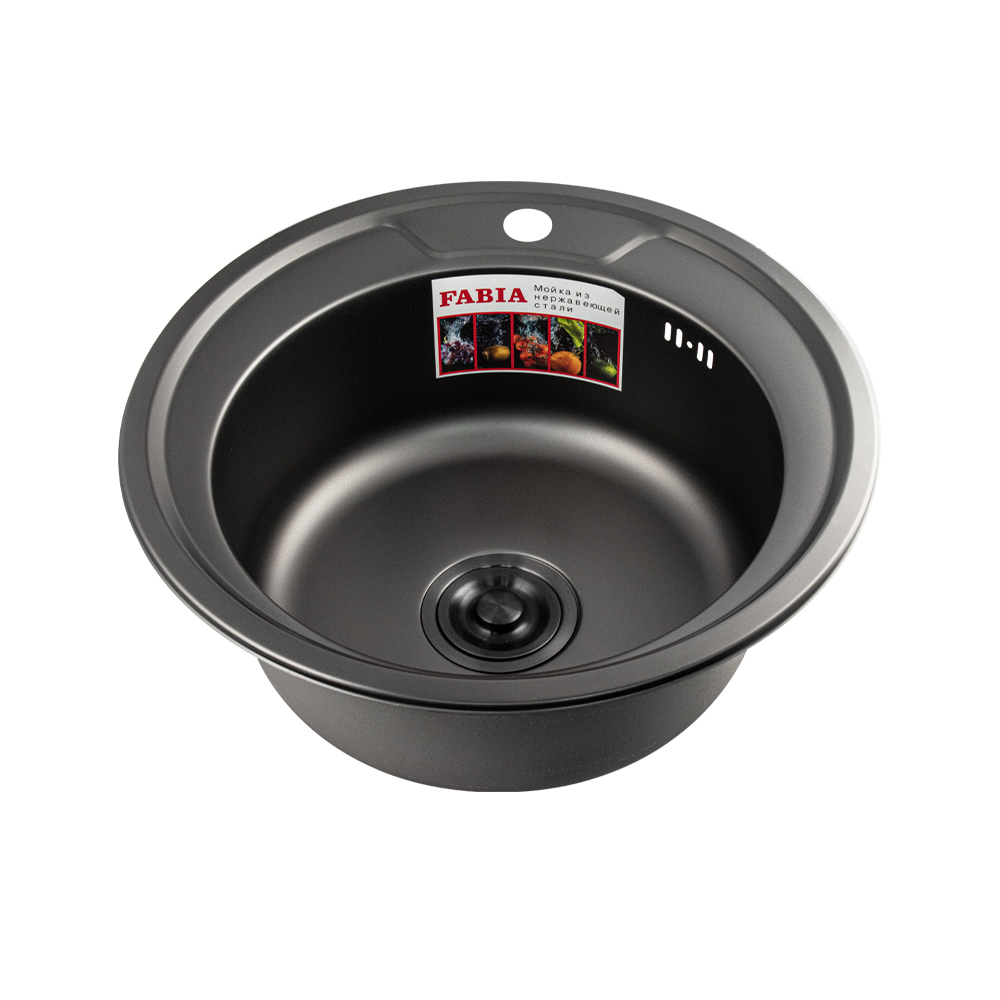 Врезная мойка FABIA из нержавеющей стали, отличный вариант для кухни, она прослужит многие годы. Классическая форма и цвет под графит гармонично впишутся в любой интерьер и никогда не выйдут из моды. Оптимальный размер позволяет свободно мыть посуду, без страха её разбить. Мойка врезается в столешницу. Специальное дополнительное антишумовое покрытие, нанесенное на обратную сторону чаш, разработано для снижения шума воды в мойке. Конструкция краев мойки, крепления и специальная уплотнительная прокладка обеспечивает максимально плотное прилегание к столешнице и защищает от протекания. Практичная площадка, расположенная по центру, даёт возможность вмонтировать любую понравившуюся модель смесителя. В комплекте сифон с большой горловиной с переливом, крепёж. Габаритные размеры: d = 490 мм, глубина 180 мм, толщина стали 0,8 мм. Вес - 2,600 кг, объём - 0,01301 м3.