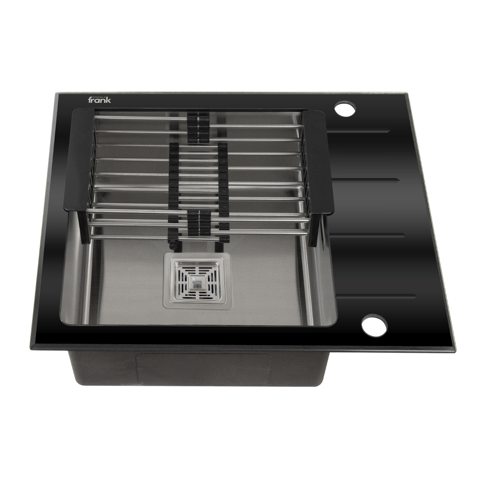 Мойка врезная, универсальная (левая + правая) органично сочетает в себе стильный дизайн и практичность. Глубокая чаша изготовлена из нержавеющей стали. Выдерживает высокую эксплуатационную нагрузку и воздействие химических веществ. Для безопасной эксплуатации оснащена сливом - переливом и корзинчатым вентилем, автоматический донный клапан повышает комфорт пользования. Применение закаленного чёрного стекла толщиной 8 мм придает модели оригинальный вид. На нем незаметны известковый налет и жирные пятна, легко моется и сохраняет белизну. Габаритные размеры: ширина 600 мм, длина 500 мм, глубина 200 мм, толщина стекла 8 мм, чаша 1 мм. Вес - 11,000 кг, объём - 0,10660 м3.