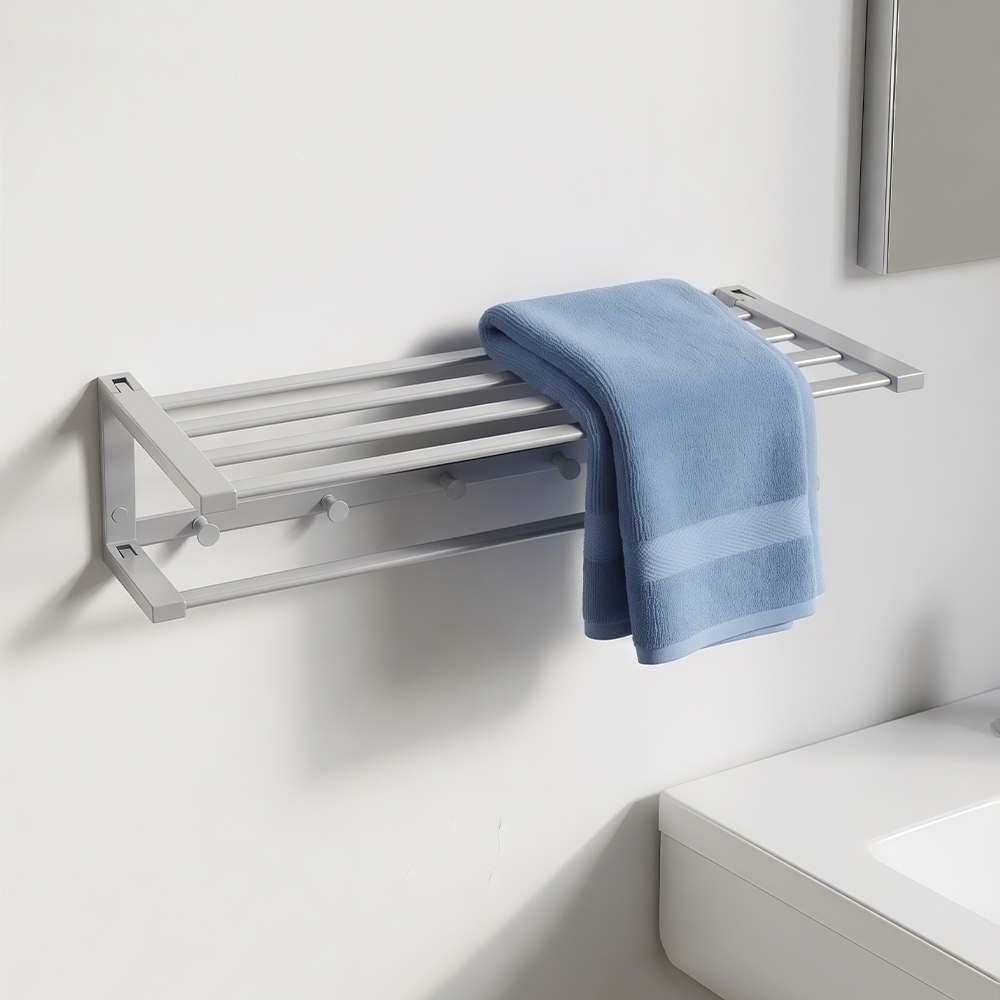 Полка для полотенца с опорой большая, для ванной, привлекает своим современным дизайном, многофункциональностью и надежностью конструкции. Вместительная верхняя часть полки в ванную комнату позволяет размещать на ней объёмные вещи. Кухня, ванная, прихожая, кладовка или гардеробная - эта полка идеально подойдет везде. Металлическая полка оснащена дополнительной перекладиной и крючками Полка для ванной функциональное и практичное решение для любого интерьера. Материал изготовления — алюминий. Матовое покрытие очень стойко переносит истирания и обеспечивает идеальный вид изделия. Идеально подойдет не только для ванной, но и для кухни. Изделие крепится к стене с помощью дюбелей и саморезов (входят в комплект). Габаритные размеры: ширина 590 мм, высота 145 мм, глубина 235 мм. Вес - 1.73 кг, объём - 0.016 м3.