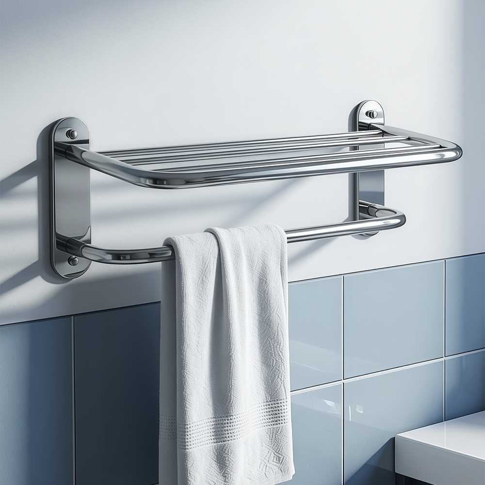 Полка для полотенца с опорой большая, для ванной, привлекает своим современным дизайном, многофункциональностью и надежностью конструкции. Вместительная верхняя часть полки в ванную комнату позволяет размещать на ней объёмные вещи. Кухня, ванная, прихожая, кладовка или гардеробная - эта полка идеально подойдет везде. Металлическая полка оснащена дополнительной перекладиной. Безупречно отшлифованная нержавеющая сталь делает её устойчивой к влаге и исключает появление ржавчины. Полка для ванной функциональное и практичное решение для любого интерьера. Материал изготовления — нержавеющая сталь. Хромированное покрытие очень стойко переносит истирания и обеспечивает зеркальный блеск изделия. Идеально подойдет не только для ванной, но и для кухни. Изделие крепится к стене с помощью дюбелей и саморезов (входят в комплект). Габаритные размеры: ширина 530 мм, высота 210 мм, глубина 210 мм. Вес - 1,100 кг, объём - 0,00572 м3.