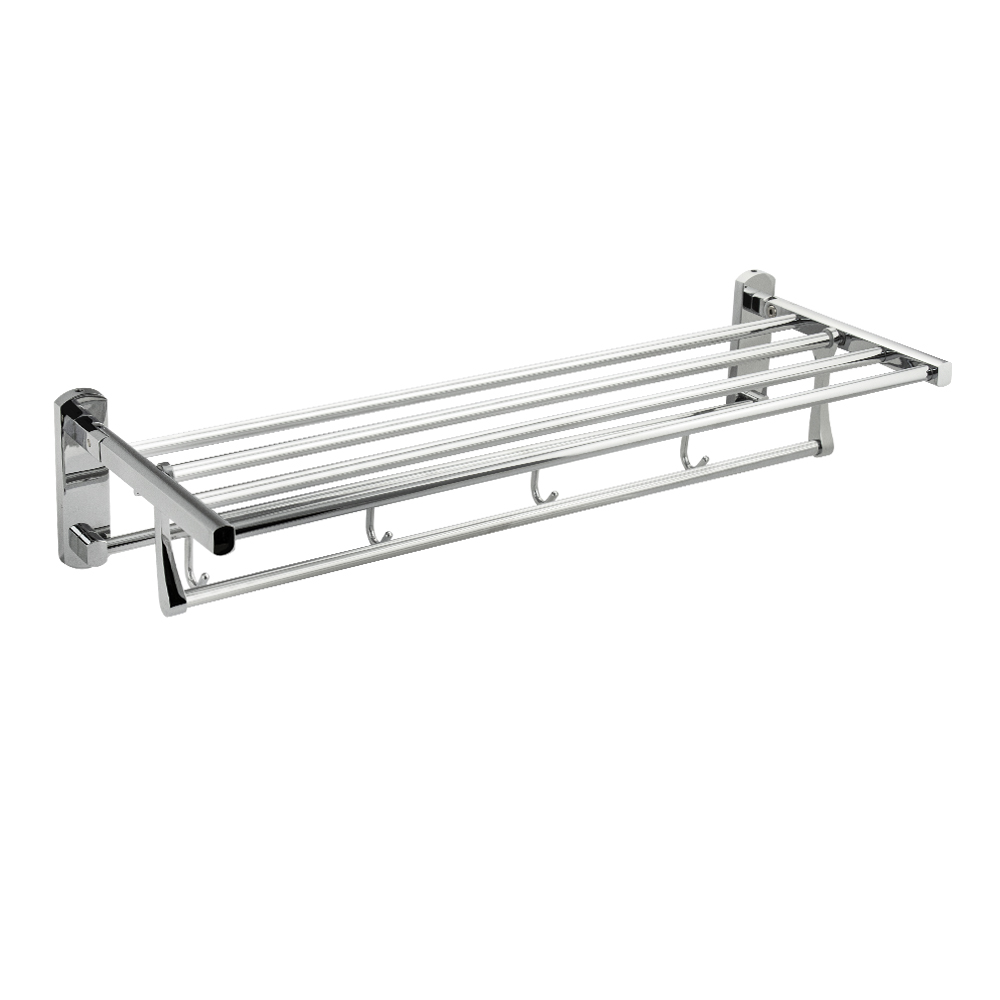 Полка для полотенца с опорой большая, для ванной, привлекает своим современным дизайном, многофункциональностью и надежностью конструкции. Откидывающаяся на 90° верхняя часть полки в ванную комнату позволяет размещать её даже в самых тесных помещениях. Кухня, ванная, прихожая, кладовка или гардеробная - эта полка идеально подойдет везде. Металлическая полка оснащена дополнительной перекладиной и крючками. Безупречно отшлифованная нержавеющая сталь делает её устойчивой к влаге и исключает появление ржавчины. Полка для ванной функциональное и практичное решение для любого интерьера. Материал изготовления — нержавеющая сталь марки 304. Хромированное покрытие очень стойко переносит истирания и обеспечивает зеркальный блеск изделия. Идеально подойдет не только для ванной, но и для кухни. Изделие крепится к стене с помощью дюбелей и саморезов (входят в комплект). Размеры: ширина 600 мм, глубина 240 мм, высота 150 мм. Вес - 2,200 кг, объём - 0,01610 м3.