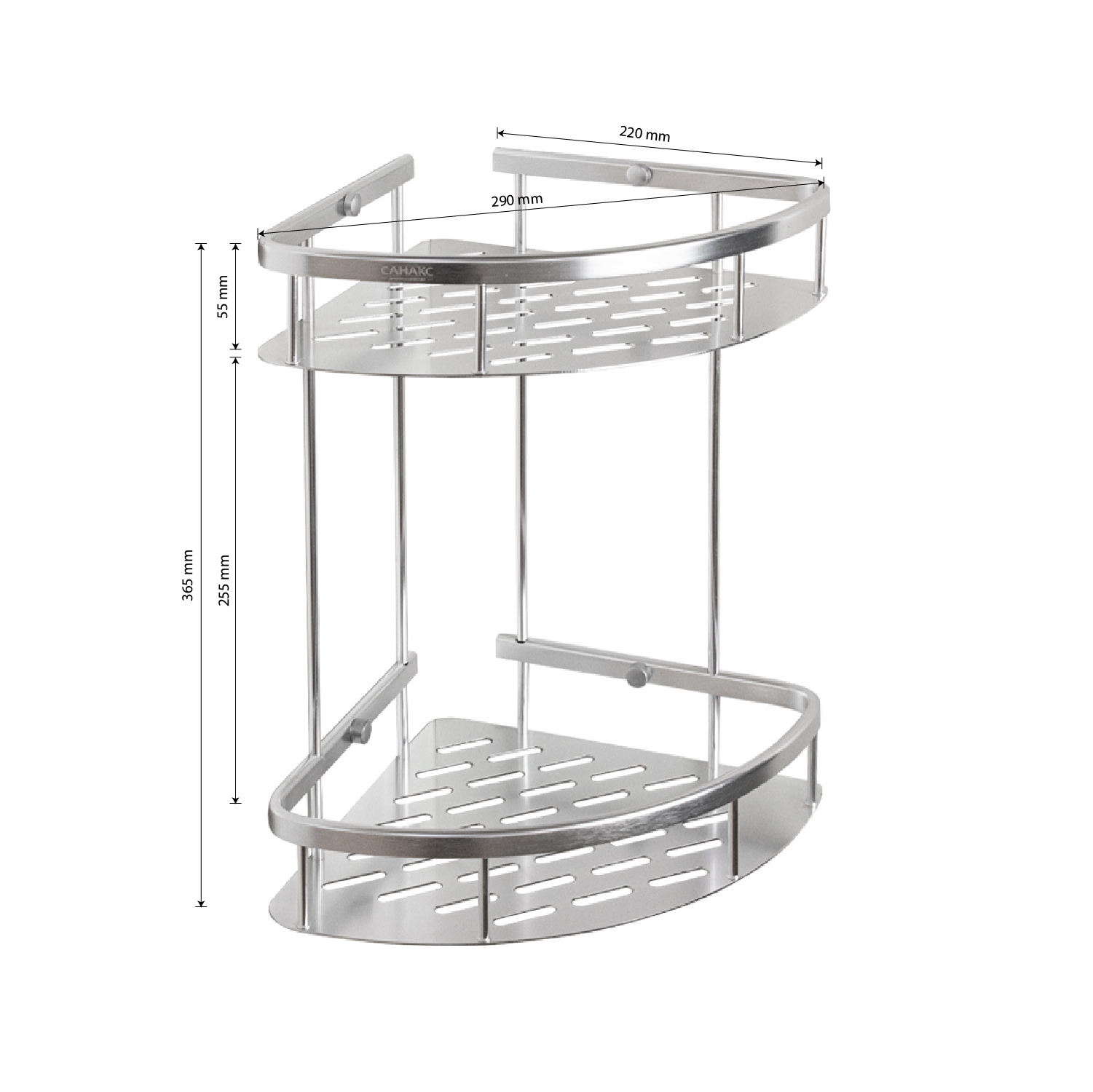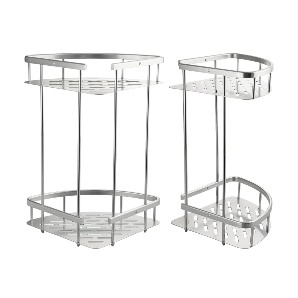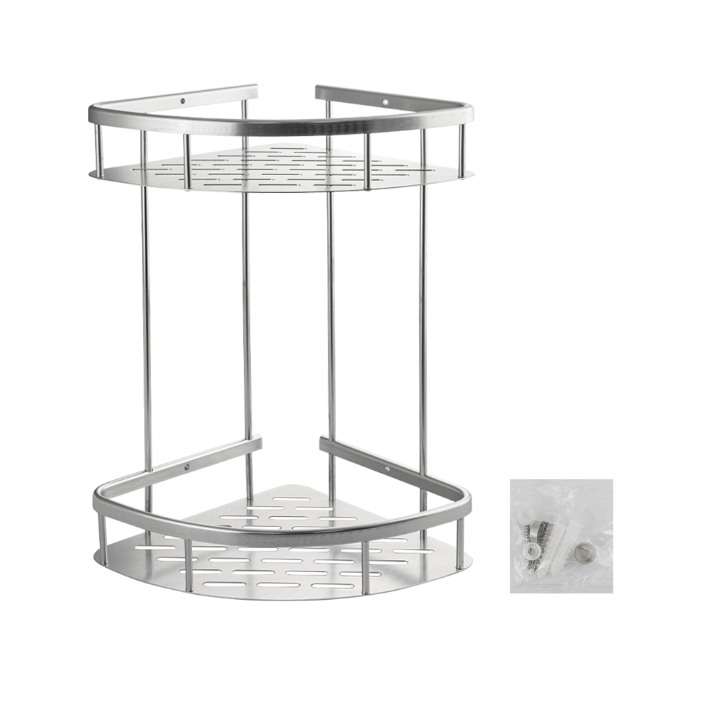 Полочка для принадлежностей угловая, двойная, с литым дном, обладает высокими эксплуатационными характеристиками и подходит для использования дома, в общественных местах: отелях, ресторанах и пр. Изготовлена из высокопрочного алюминия с матовым покрытием, которое придает безупречный вид и долговечность. Аксессуар не занимает много места, надежно фиксируется к стене при помощи набора креплений и служит удобным местом для хранения бытовых и косметических средств. Габаритные размеры: высота 365 мм, ширина 290 мм, глубина 220 мм, высота полки 55 мм, расстояние между полками 255 мм. Вес - 0,600 кг, объём - 0,01594 м3.