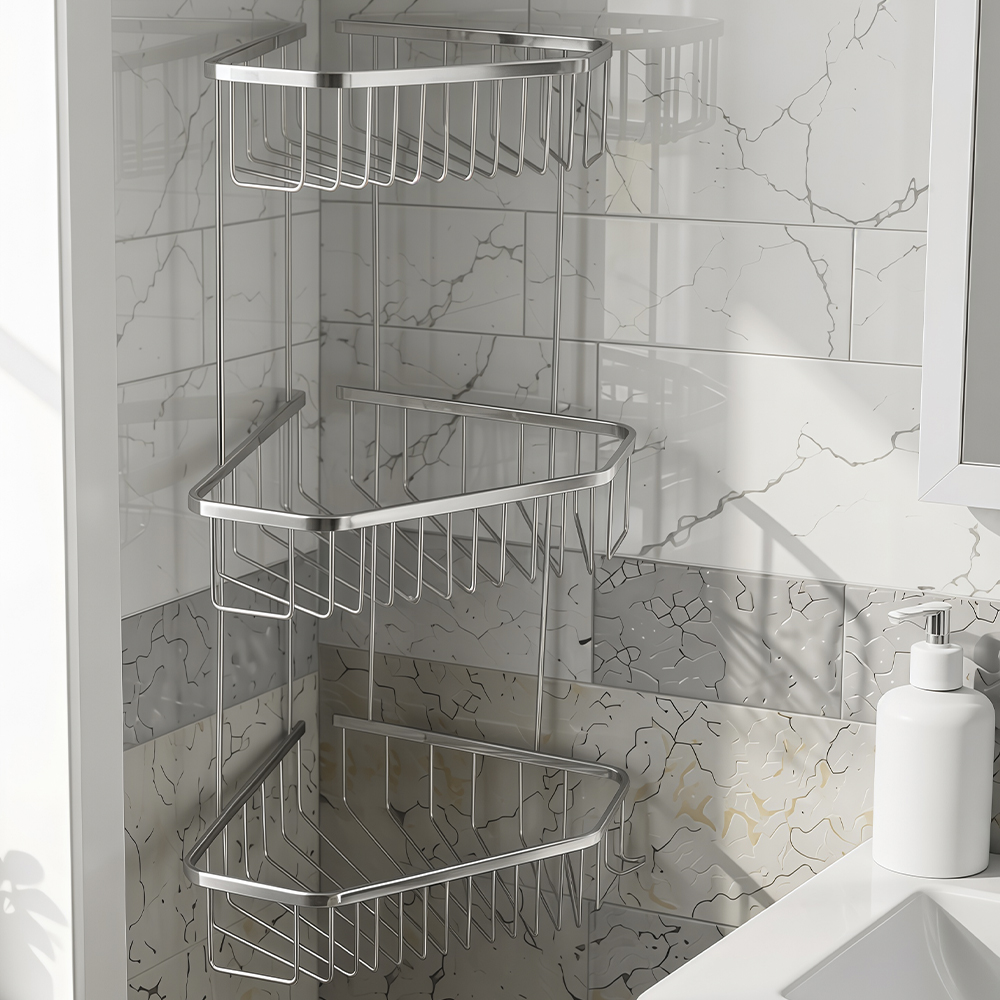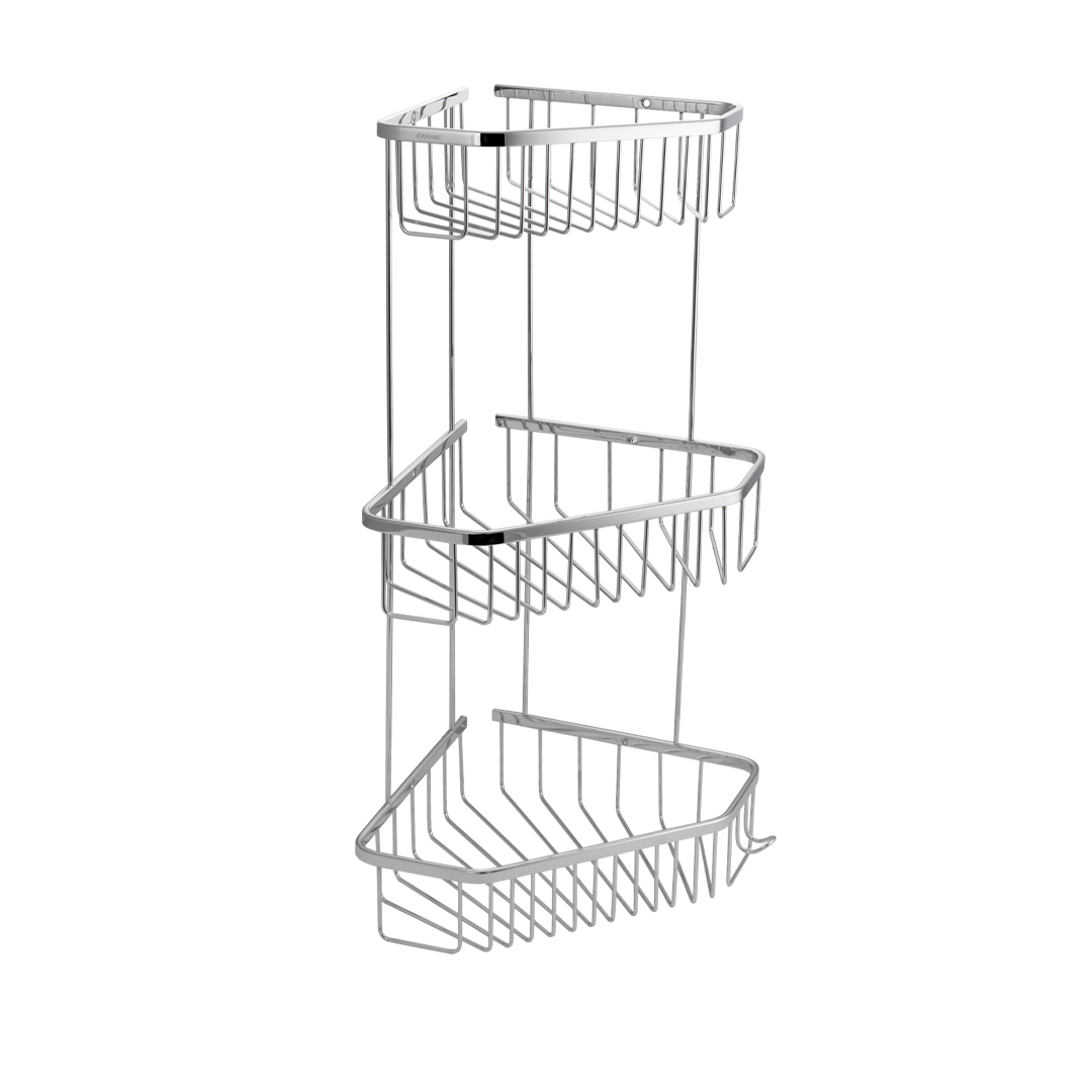 Полочка угловая, пятиугольная, двухэтажная, для принадлежностей, решётка обладает высокими эксплуатационными характеристиками и подходит для использования дома, в общественных местах: отелях, ресторанах и пр. Изготовлена из прочной нержавеющей стали с хромоникелевым покрытием, которое придает безупречный глянцевый блеск и долговечность. Металлическая полка оснащена крючкоми. Аксессуар не занимает много места, надежно фиксируется к стене при помощи набора креплений (входят в комплект) и служит удобным местом для хранения бытовых и косметических средств. Габаритные размеры: высота 560 мм, верхняя полка 180*270 мм, средняя полка 220*310 мм, нижняя полка 250*325 мм, расстояние между полками 175 мм, высота полки 70 мм. Вес - 1,600 кг, объём - 0,04500 м3.