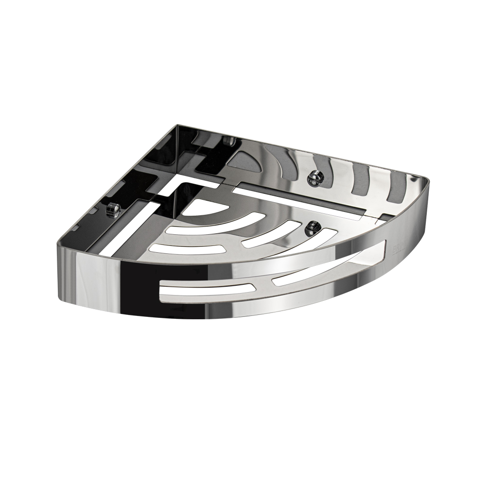 Полочка для принадлежностей, треугольная, угловая, с литым дном, одноэтажная, обладает высокими эксплуатационными характеристиками и подходит для использования дома, в общественных местах: отелях, ресторанах и пр. Изготовлена из прочной нержавеющей стали с хромоникелевым покрытием, которое придает безупречный глянцевый блеск и долговечность. Аксессуар не занимает много места, надежно фиксируется к стене при помощи набора креплений (входят в комплект) и служит удобным местом для хранения бытовых и косметических средств. Габаритные размеры: высота 45 мм, ширина 290 мм, глубина 210 мм. Вес - 0,700 кг, объём - 0,00378 м3.