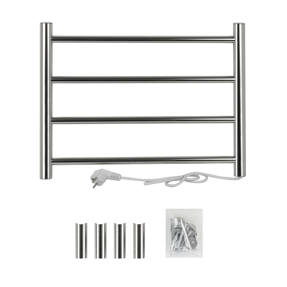 Полотенцесушитель электрический классик, премиум, прямой, лесенк, из нержавеющей стали 304, тэн из углеродного волокна, гармонично впишется в современный интерьер и поможет поддержать комфортную атмосферу в ванной комнате, работает вне зависимости от отопительного сезона, и его можно разместить в любом месте ванной или даже на стене в комнате. Хромированная поверхность устойчива к высоким температурам. Благодаря продуманному расположению труб можно размещать объемный текстиль, сократив время просушки. Установка и ремонт не требуют работы сантехников. Габариты и параметры: ширина 530 мм, высота 400, глубина 75 мм. 4 перекладины с сухим ТЭНом, 40 W, 220-230 V, 50-60 Гц, t - 50°С, IP 44. Комплект: полотенцесушитель, крепёж, провод с евровилкой для подключения. Вес - 2,200 кг, объём - 0,01121 м3.