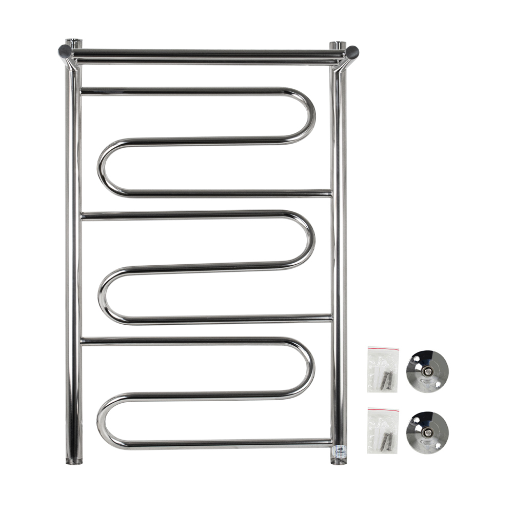 Водяной полотенцесушитель, хромированный, лесенка - зигзаг с полкой, изготовлен из высокопрочной нержавеющей стали. Металл устойчив к коррозии и деформации, отлично выдерживает перепады температуры и давления в системе водоснабжения. После установки полотенцесушителя в помещении становится значительно комфортнее: уменьшается влажность, исчезает конденсат, снижается риск появления плесени. Изделие не только поддержит комфортную температуру в санузле, но и быстро просушит белье. Подключение 1". Подключается к системе горячего водоснабжения, функционирует круглый год. Габаритные размеры: высота 800 мм, ширина 500 мм, глубина от стены 280 мм, диаметр трубы 32 мм, толщина 2 мм. Комплект: полотенцесушитель, 4 крепления, кран Маевского поможет удалить воздух из системы, декоративные заглушки. Вес - 6,800 кг, объём - 0,07800 м3.