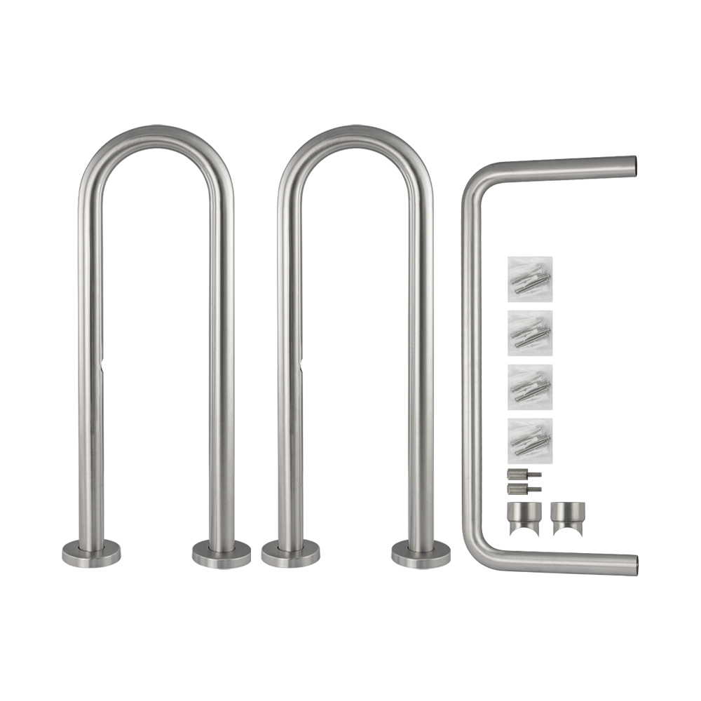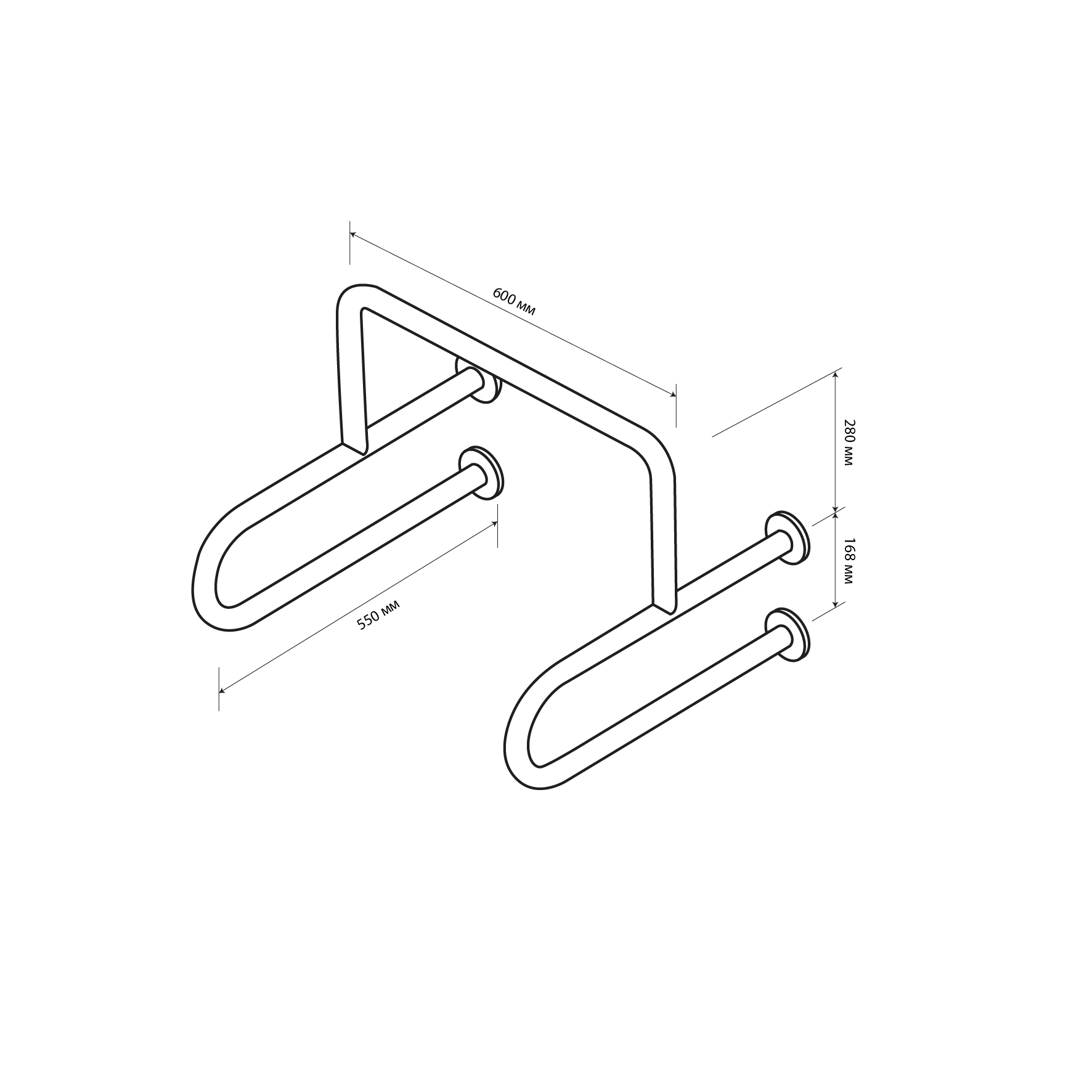 Поручень для инвалидов к писсуару. Изделие представляет собой эргономичное опорное устройство, предназначенное для установки над писсуаром. Выполнено из высококачественной нержавеющей стали AISI 304, что обеспечивает защиту от коррозии и продолжительный эксплуатационный период. Поручень выполнен из цельной трубы, не имеет видимых швов и соединений и является полностью травмобезопасным. Конструкция поручня имеет форму и ширину, удобную для захвата кистью руки, является травмобезопасной не имеет стыков на поверхности и острых углов. Габаритные размеры: ширина 600 мм, длина от стены 550 мм, высота 448 мм, расстояние между двумя параллельными поручнями 168 мм. Вес - 4,200 кг, объём - 0,00378 м3.
