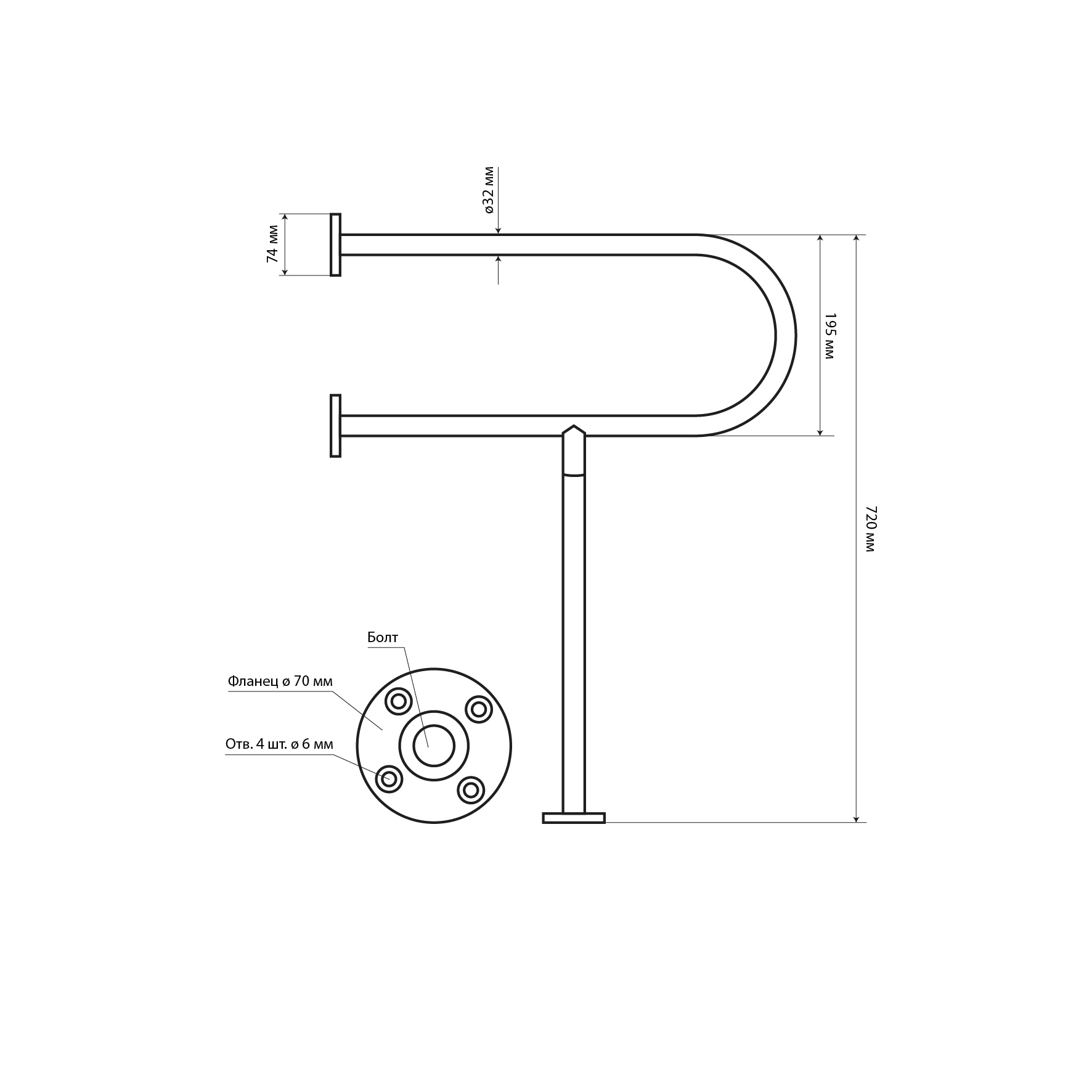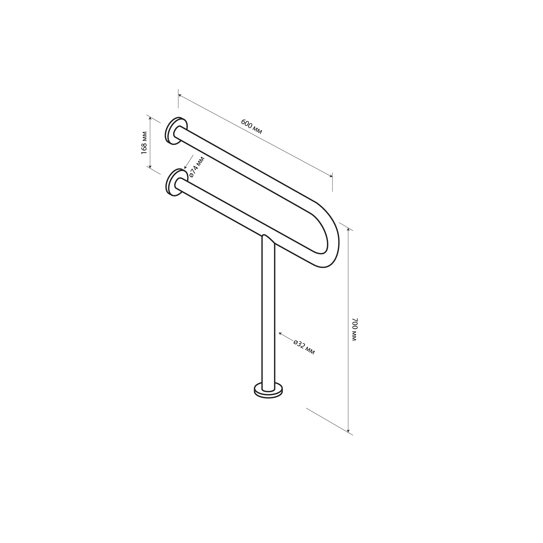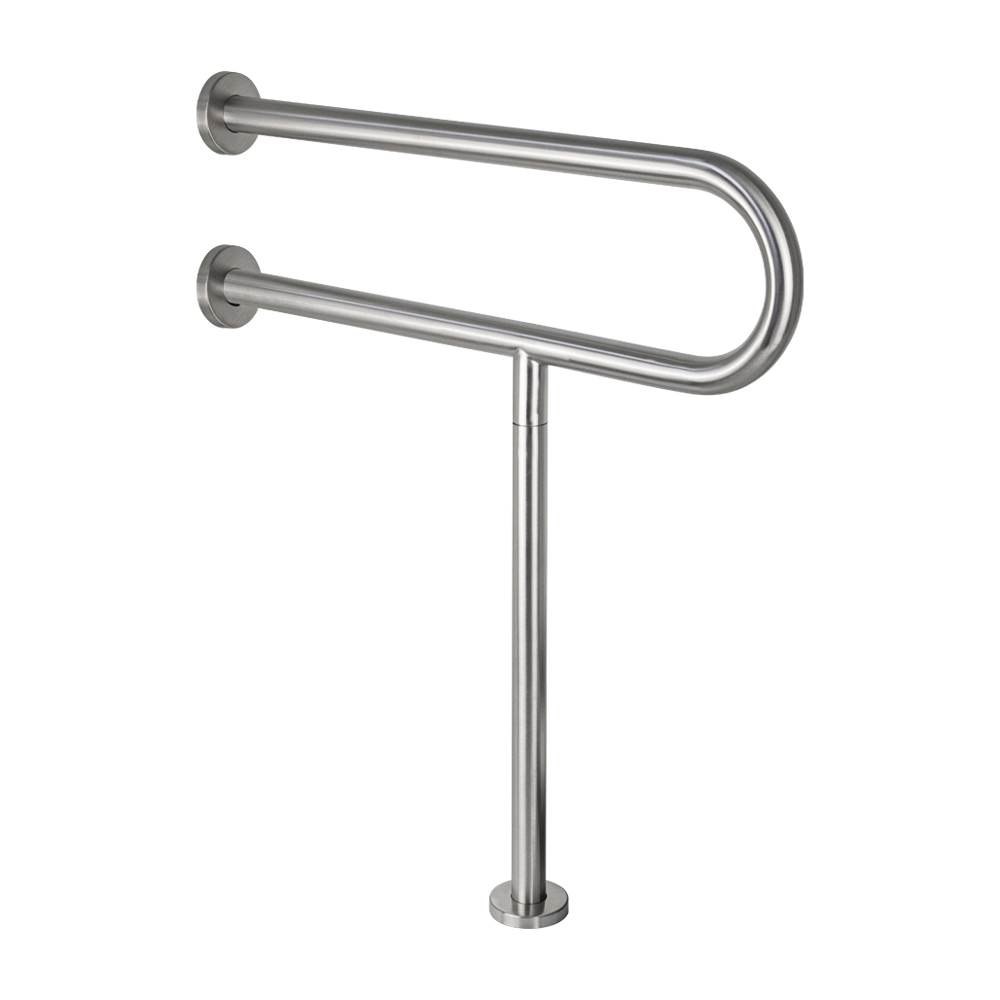 Поручень для инвалидов к унитазу с опорой в пол, хромированный. Изделие представляет собой эргономичное опорное устройство, предназначенное для установки к унитазу. Выполнено из высококачественной нержавеющей стали с хромированным покрытием, что обеспечивает защиту от коррозии и продолжительный эксплуатационный период. Поручень выполнен из цельной трубы, не имеет видимых швов и соединений и является полностью травмобезопасным. Конструкция поручня имеет форму и ширину, удобную для захвата кистью руки, является травмобезопасной не имеет стыков на поверхности и острых углов. Габаритные размеры: расстояние между двумя параллельными поручнями 168 мм, диаметр трубы 32 мм. Вес - 2,300 кг , объём - 0,01669 м3.