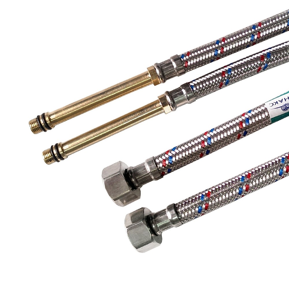 Гибкая подводка для воды, пара, гайка - длинный латунный штуцер, 1/2", 60 cм с внутренней резьбой предназначена для присоединения к трубопроводам сантехнической арматуры и приборов сантехнического назначения (смесителей, душевых кабин, биде, умывальников, унитазов) и подводки воды к агрегатам бытового назначения (водонагревательным приборам, стиральным и посудомоечным машинам, насосам и тд). Оплетка гибкой подводки сплетена из 7 нитей из нержавеющей стали толщиной 0,2 мм. Материал оплетки нержавеющяя сталь. Внутренний шланг (трубка) изготовлен из специальной нетоксичной резины. Внутренний диаметр шланга – 8,5 мм ± 0,5 мм. Наружный диаметр шланга – 12,5 мм ± 0,5 мм. При установке гибкой подводки концевую арматуру необходимо затягивать с усилием не более 4 Нм. Вес - 0,300 кг, объём - 0,00024 м3.