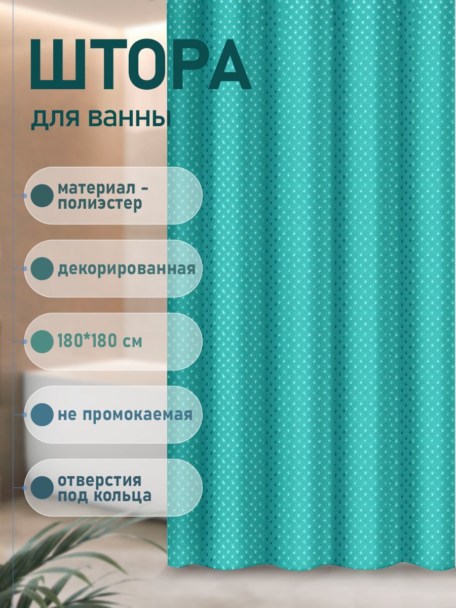 Красиво декорированная однотонная шторка в ванную и душевую комнаты - текстурная, защищающая пол и оборудование ванной комнаты от брызг воды, изготовлена из полиэстера и обладает выраженными водоотталкивающими свойствами. Занавеска для ванной имеет в верхней части 12 отверстей обработанных на оверлоке. Такие шторки не боятся влаги и не смываются даже очень горячей водой. Водоотталкивающие шторы для ванной, пошитые из ткани плотностью 80 г/м2, не придется дополнительно утяжелять - они расправятся под своим весом и не будут липнуть к телу принимающего душ человека. При заказе данных изделий следует учесть, что яркость и оттенок рисунка на ткани могут несколько отличаться от изображения на экране монитора, а также допустимо отклонение в размерах полотна в пределах 5 см. Габаритные размеры: ширина 180 см, высота 180 см. Вес - 0,500 кг, объём - 0,00200 м3.